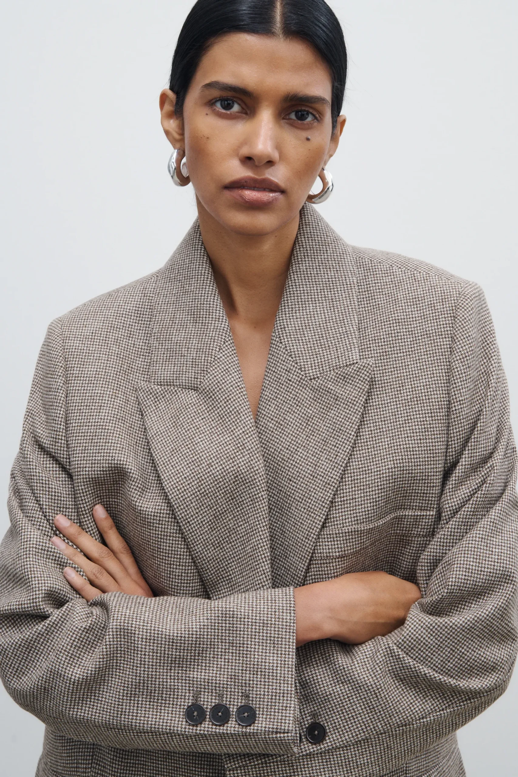 Aus einer italienischen Woll-Mischung gefertigt mit kleinem Hahnentritt-Design: Unser Blazer im Relaxed Fit mit Revers…