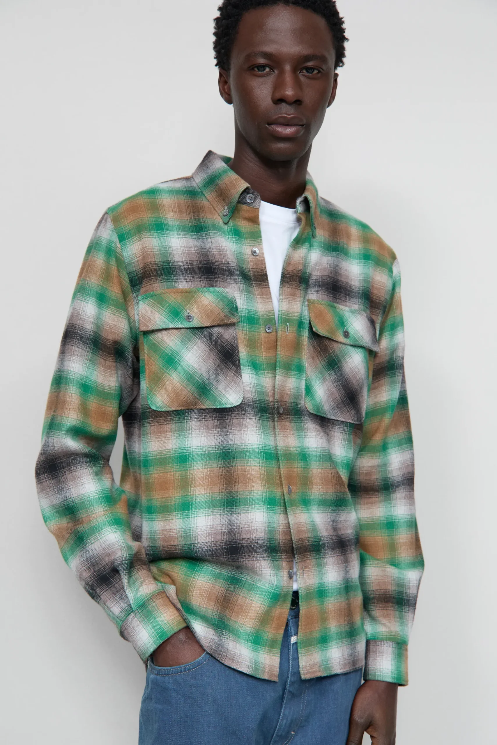 Unser Hemd aus Flannellstoff mit kariertem Muster wurde aus Baumwolle und recyceltem Polyester in Portugal hergestellt…