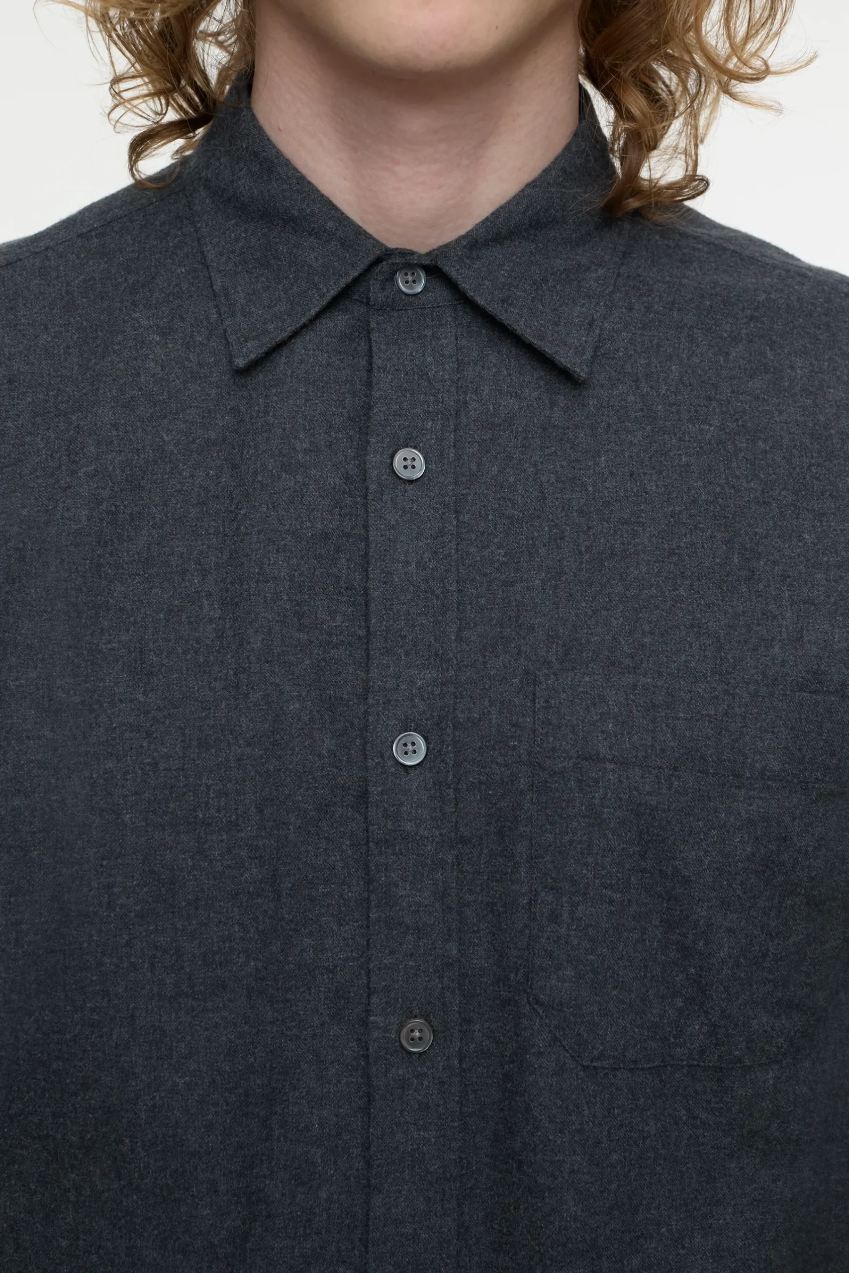 Dieses klassische Hemd mit Kragen, durchgehender Knopfleiste mit Perlmuttknöpfen und einer Brusttasche besteht aus re…