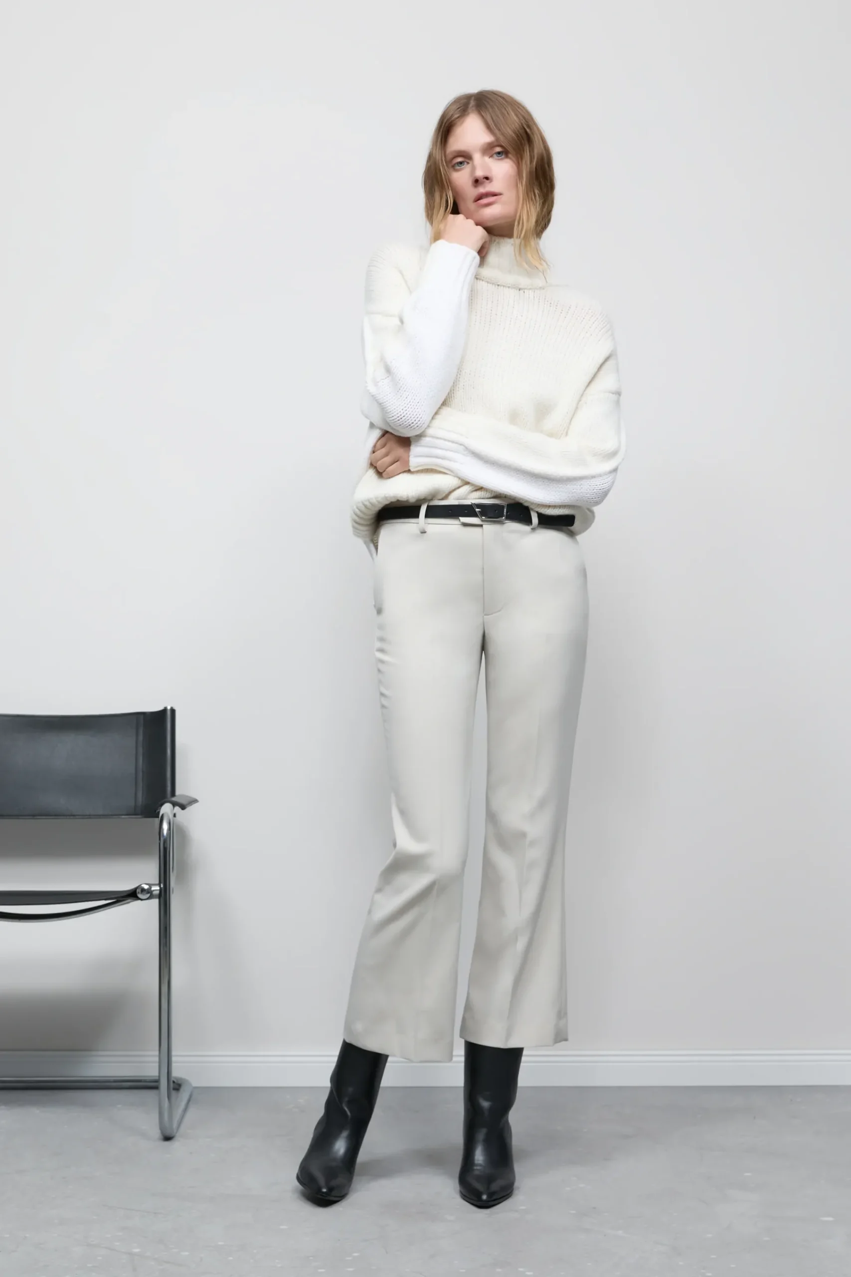 Gefertigt aus Woll-Stretch-Mix: unsere Hose im Relaxed Fit mit niedriger Bundhöhe, ausgestellter Beinform und in verk…
