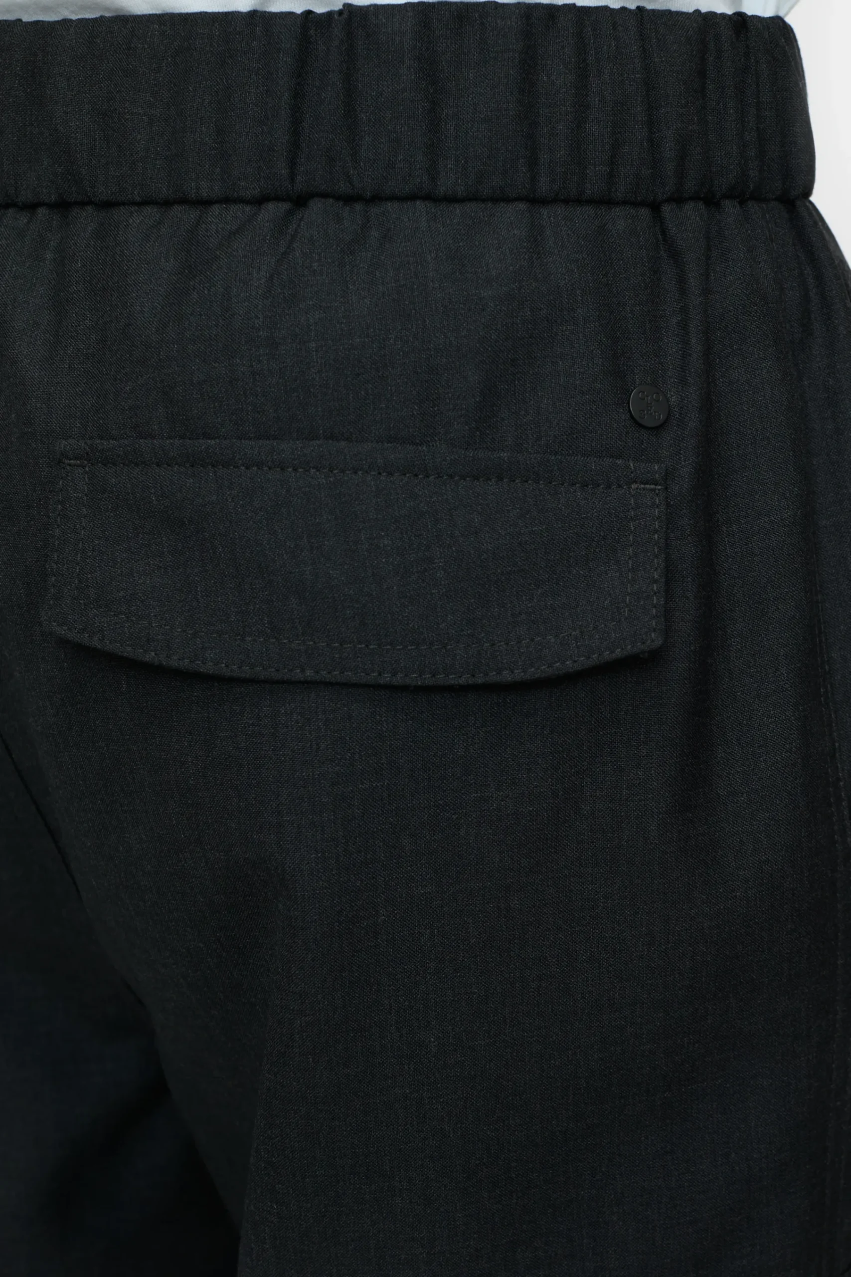 Unser Hosenmodell im Loose Fit besteht aus einem leichten technischen Stoff mit Woll-Anteil, der sich durch einen Mela…