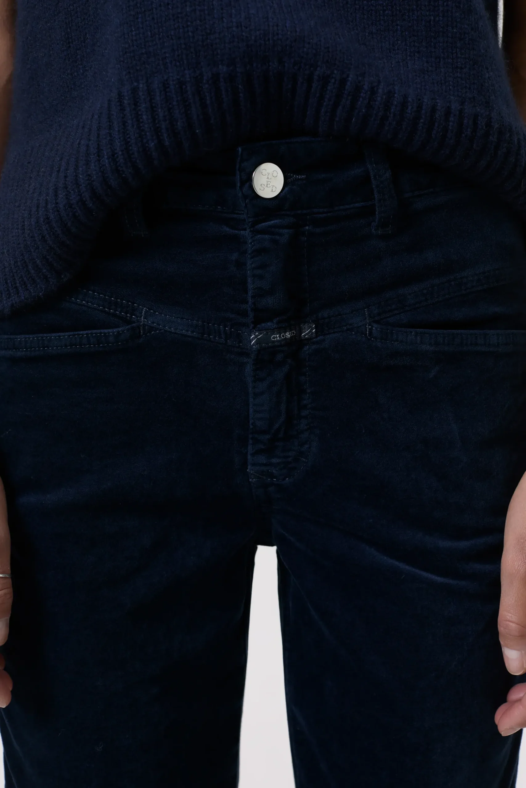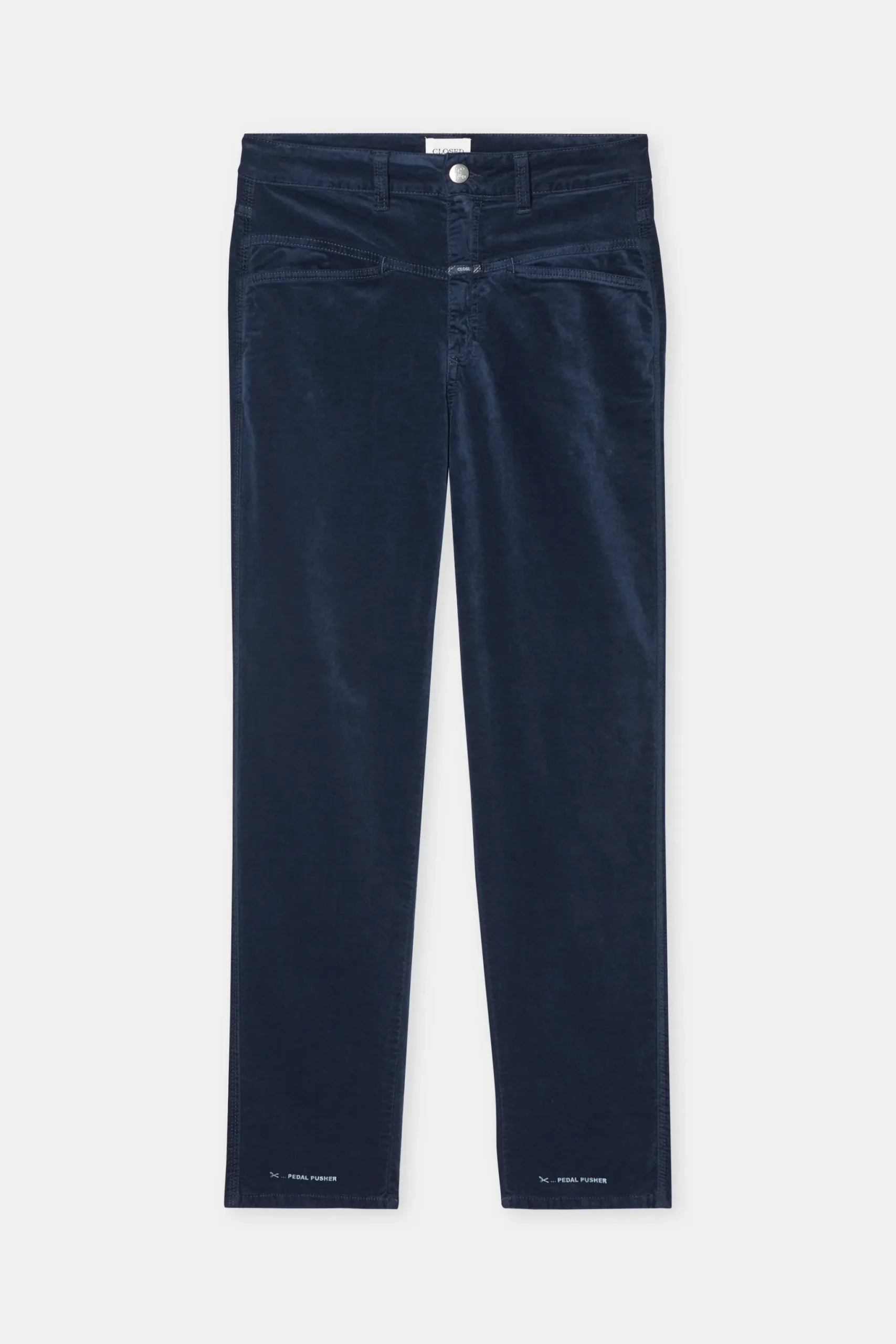 Unser Heritage-Hosenmodell in weichem Samt mit subtilem Glanz: mit hohem Bund, X-Pockets und verkürzter Länge. Durch…