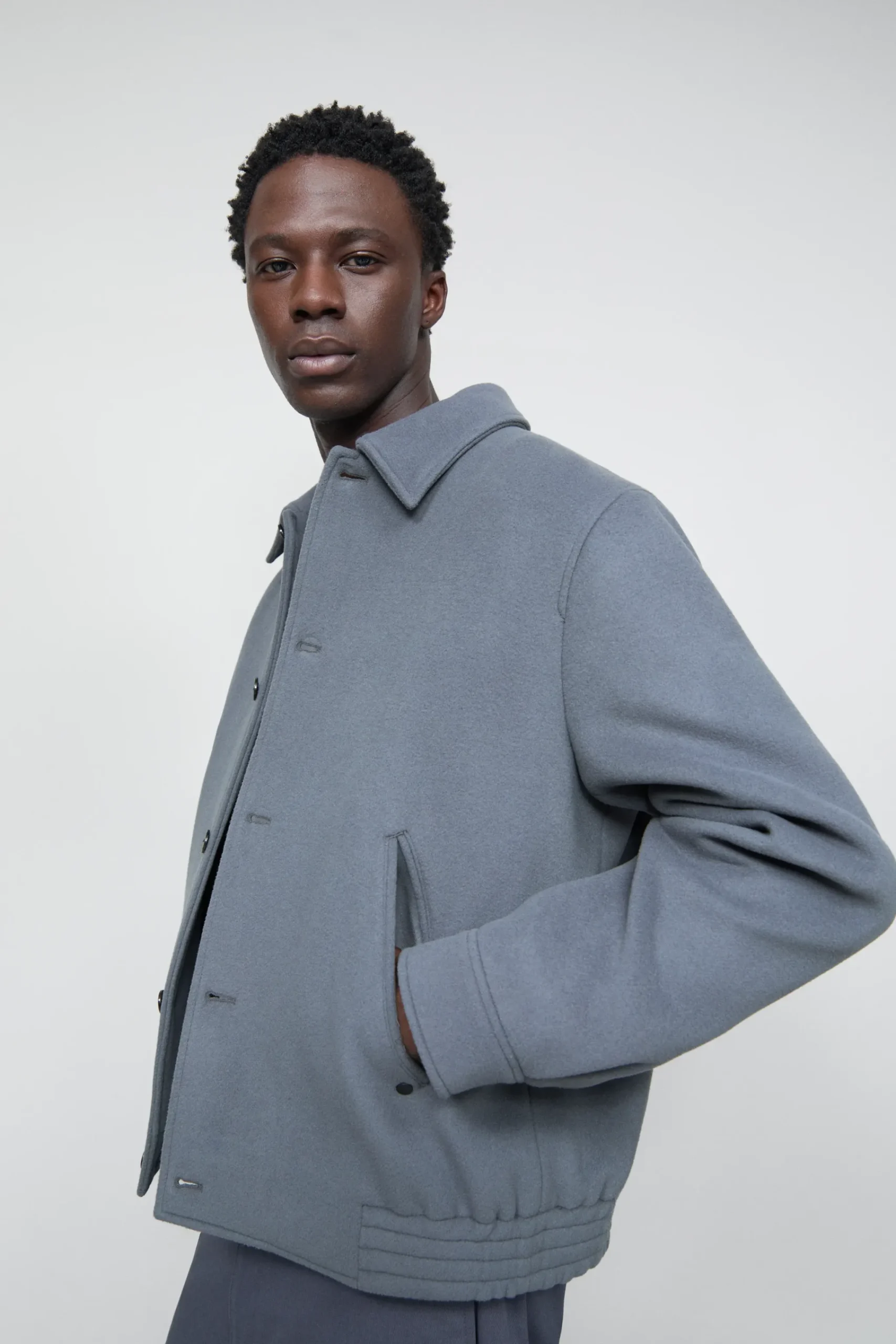 Dieser Blouson besteht aus sehr weichem italienischem Doubleface mit hohem Schurwollanteil, hergestellt in der renommi…