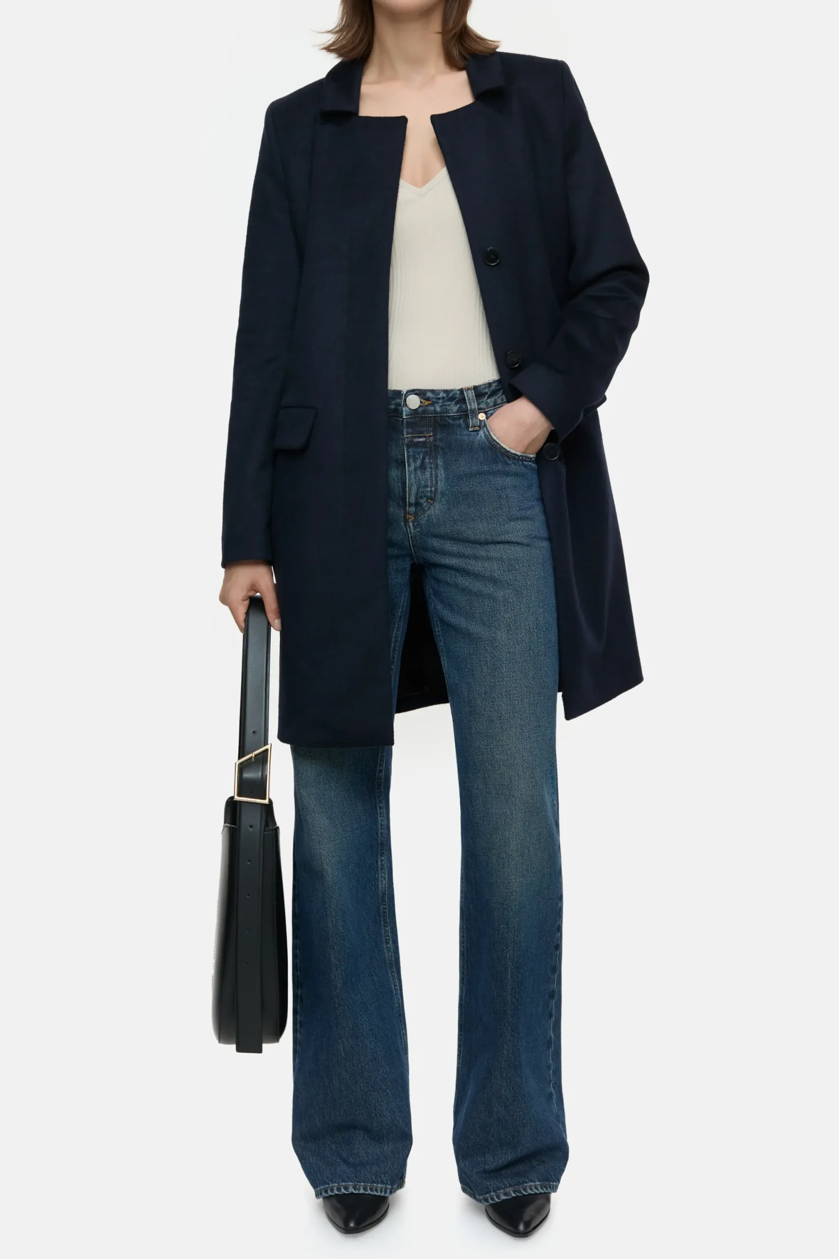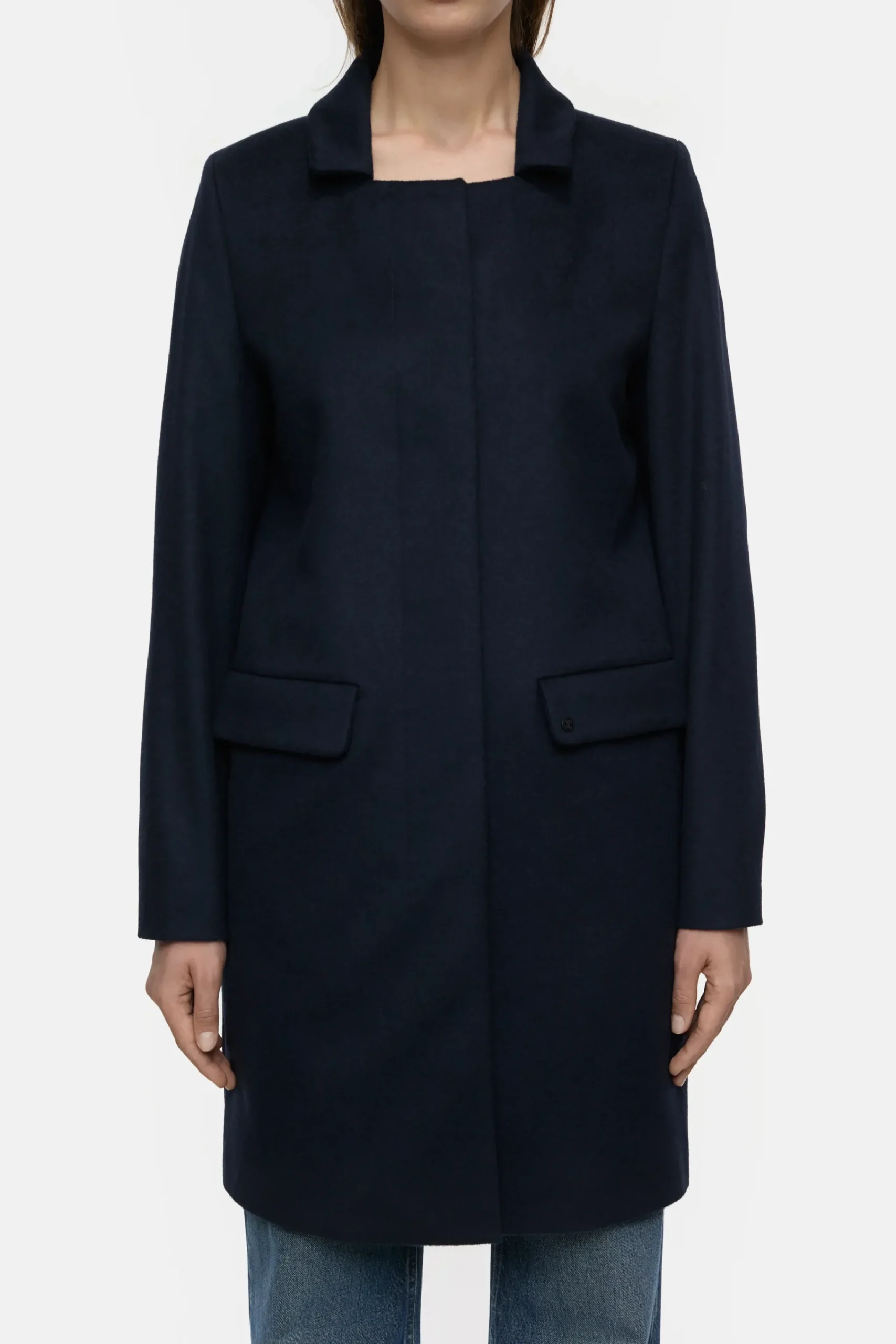 In einer besonderen Komposition aus Wolle und recyceltem Kaschmir gefertigt: Unser nachtblauer Mantel in mittlerer Lä…