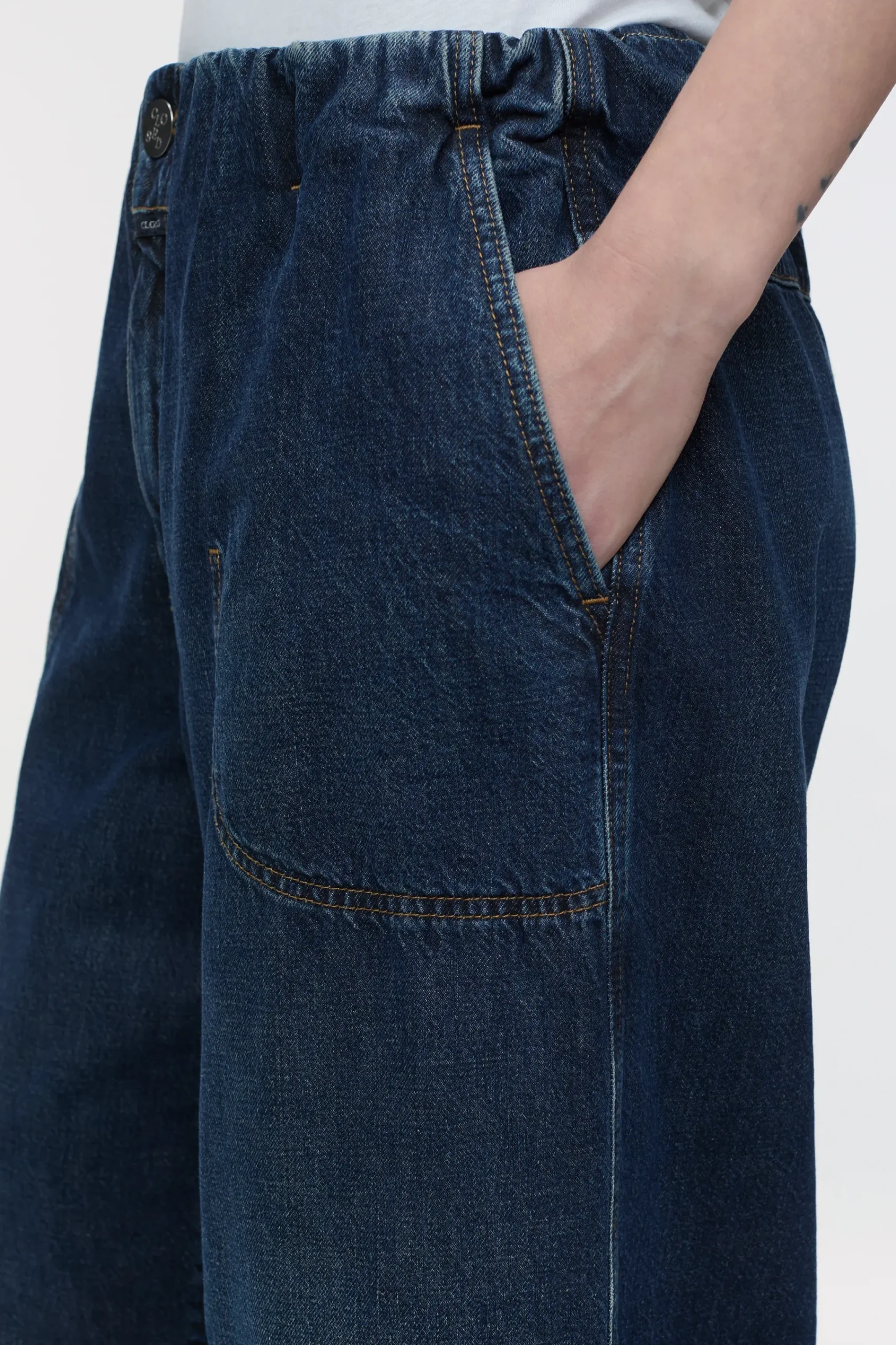 Unser neuer Jeans Style in weiter Passform mit elastischem Bund. Die seitlichen Eingriffstaschen und Paspeltasche auf …