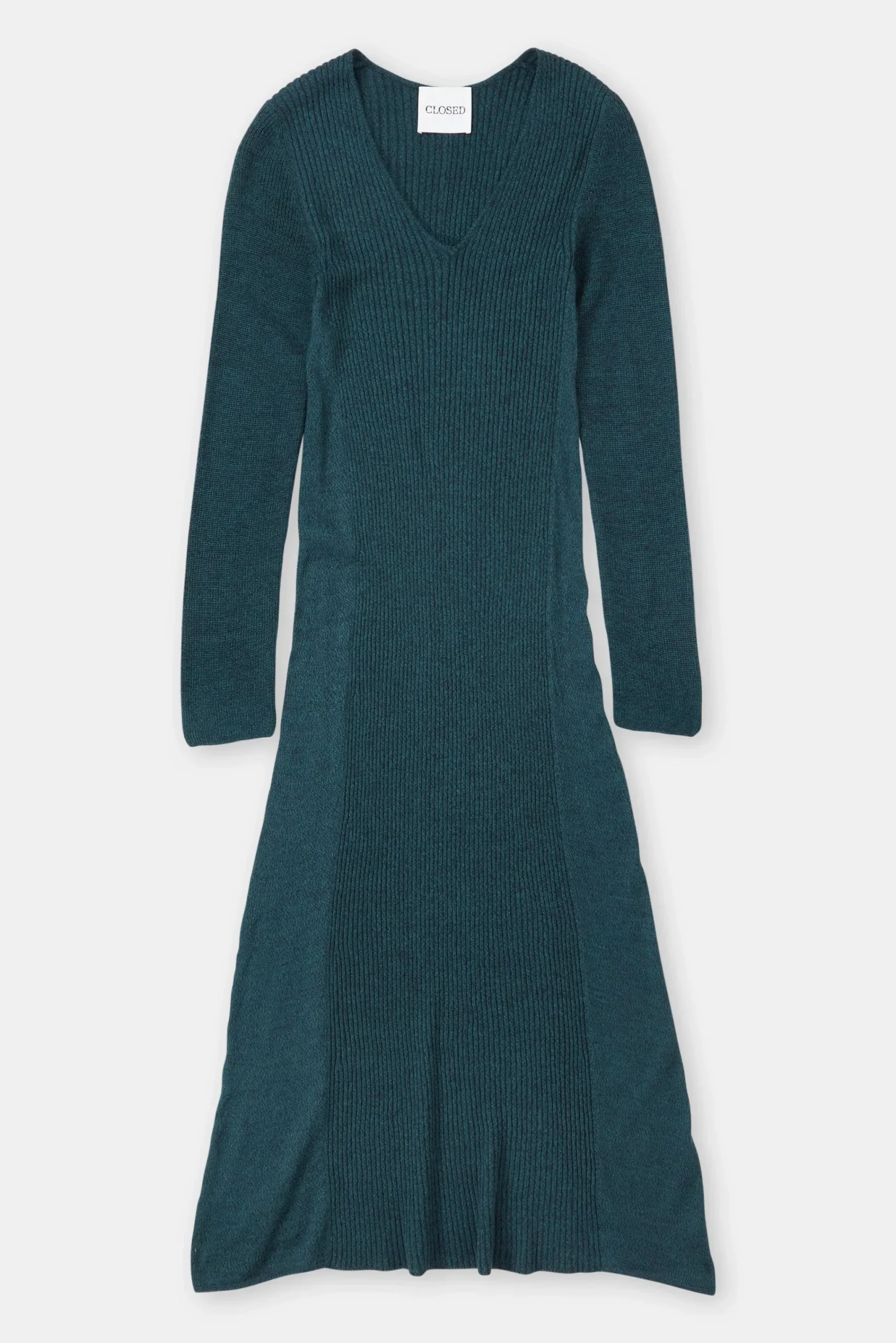 Aus italienischem Garn mit weichem Griff und Melange-Optik gestrickt: langes Kleid mit V-Ausschnitt und enganliegender…