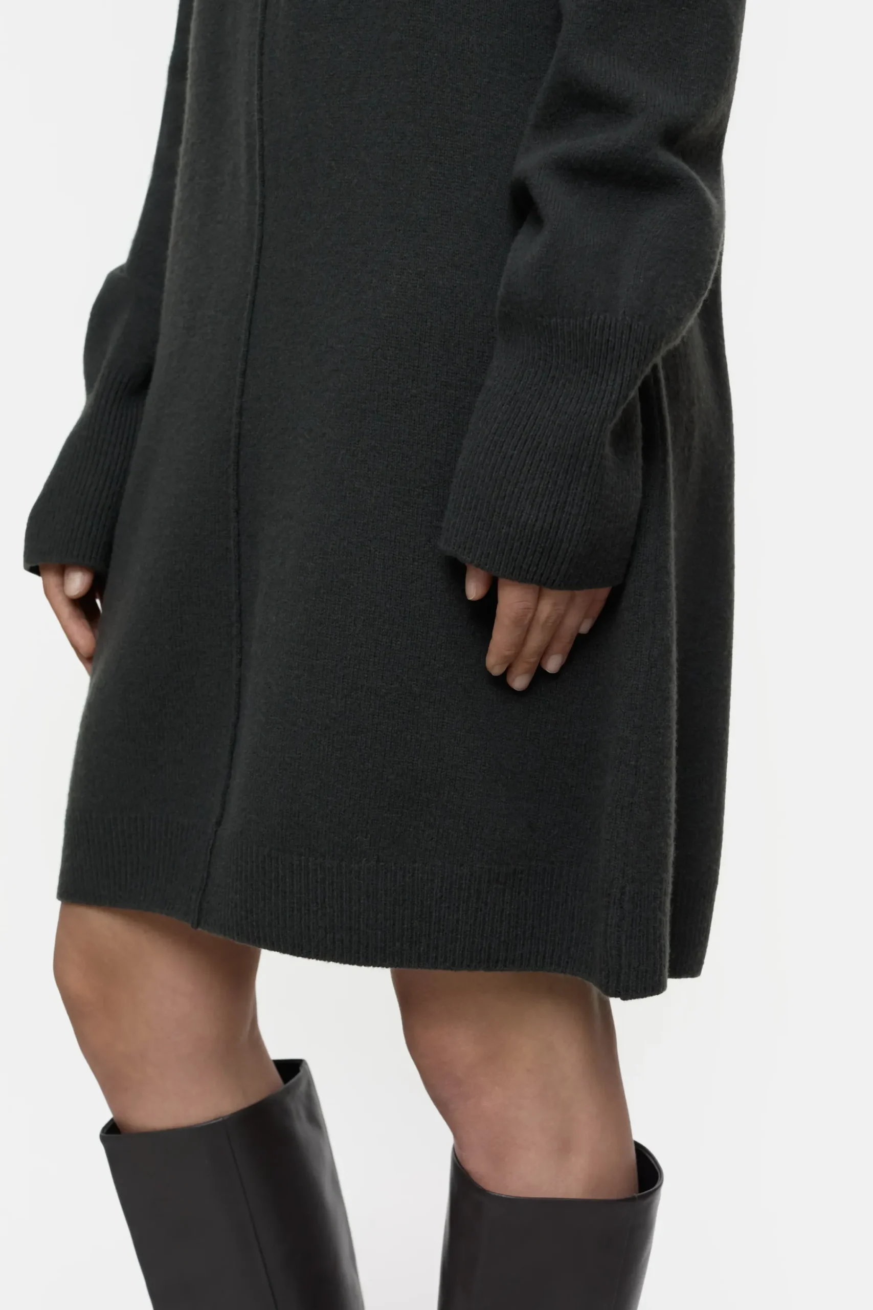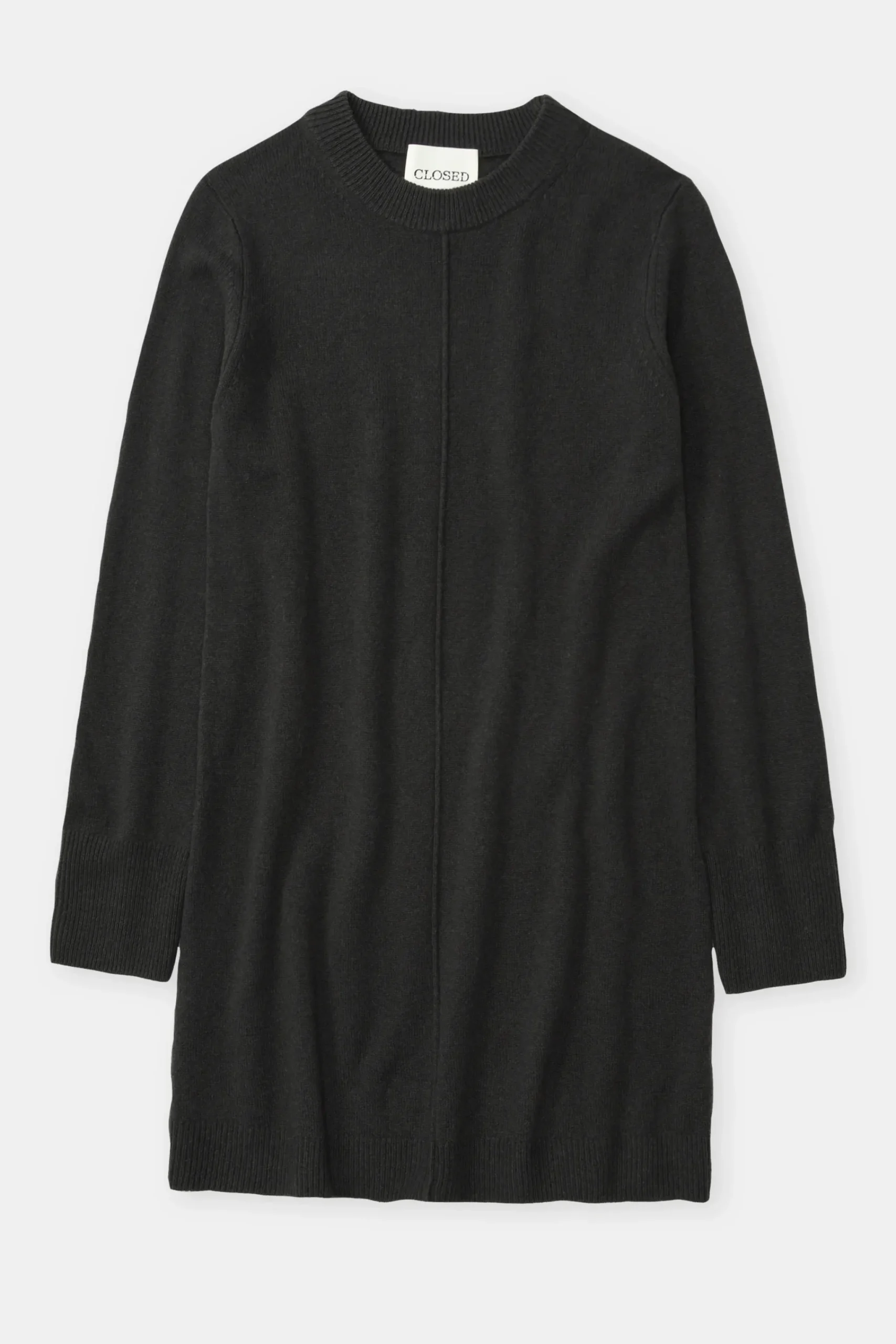 Aus mittelscherem Strick (7 gg) in Midilänge: Unser Wollkleid mit Bündchen am Rundhalsausschnitt, an den Ärmeln und…