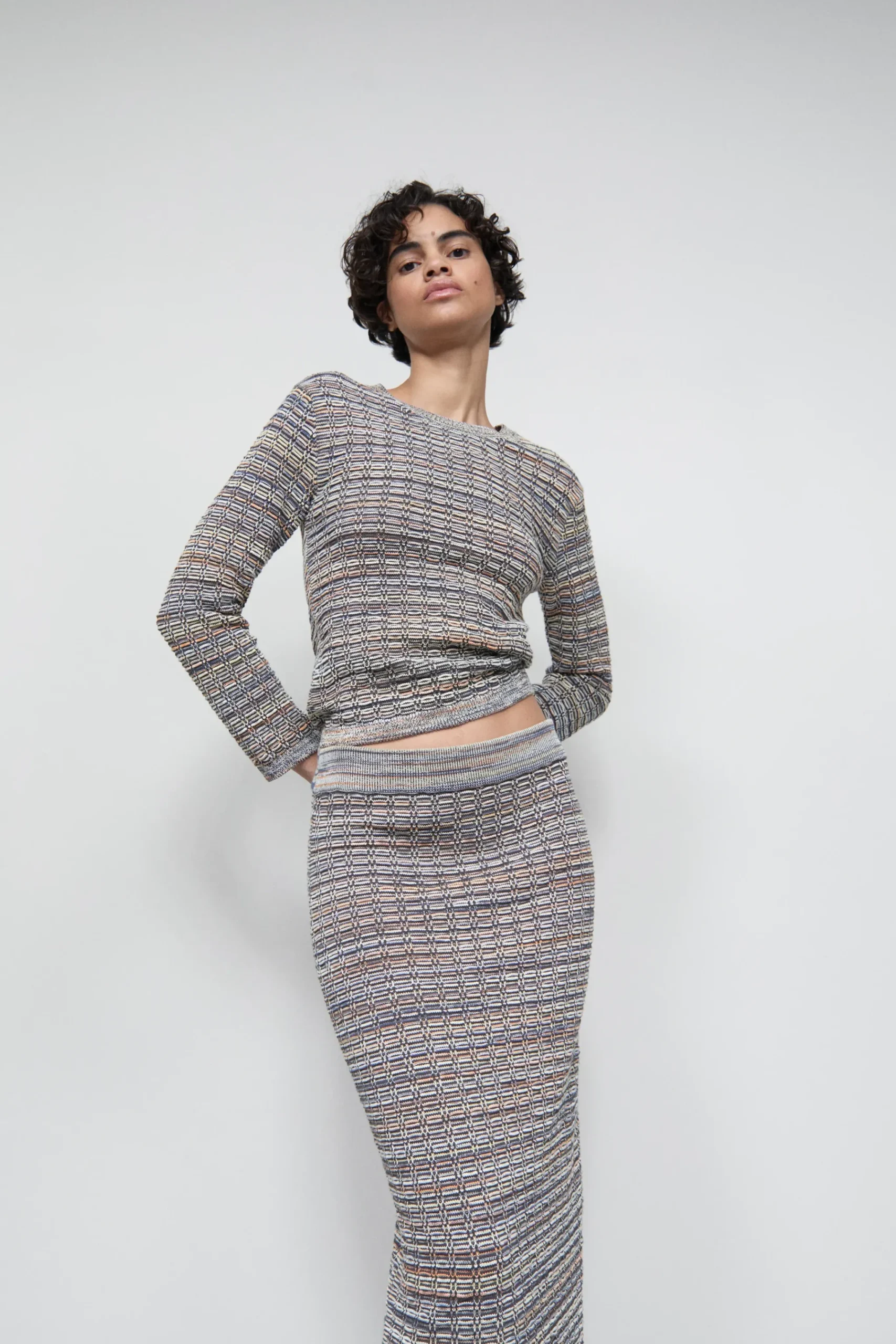 Unser schmaler Feinstrickrock (7 gg) besteht aus Baumwoll-Mix-Garn in italienischer Qualität. Die bunte und dreidimen…