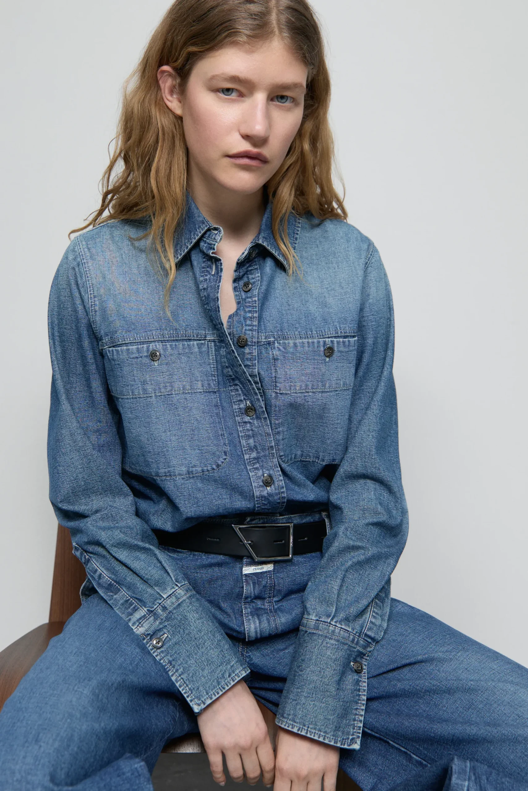 Gefertigt in Portugal: unsere Denim-Bluse aus reiner Bio-Baumwolle. Der extra für uns entwickelte italienische Rigid …