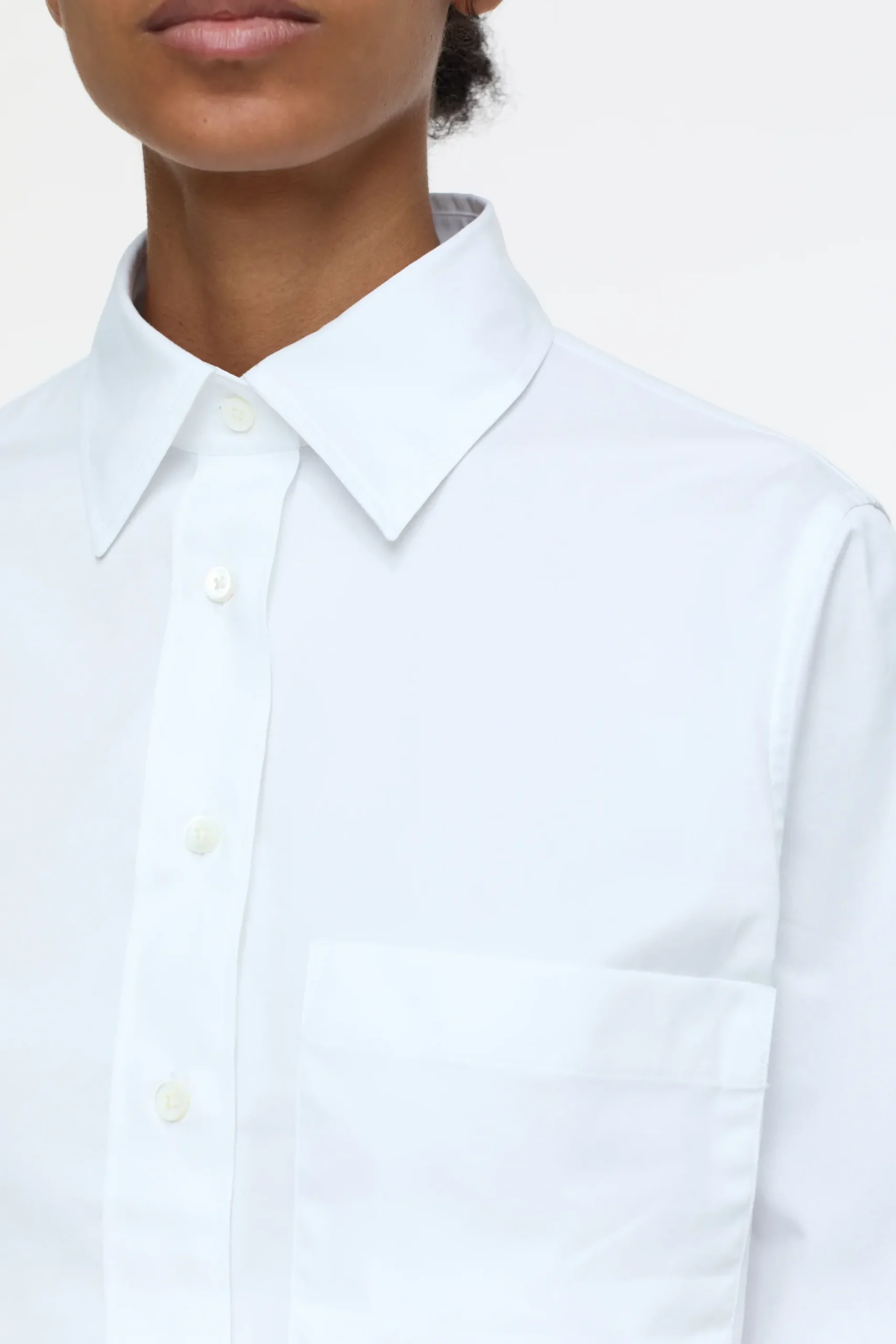 Aus kräftiger Baumwoll-Popeline mit Paper-Touch-Griff und cleaner Optik: unsere verkürzte Bluse mit klassischem Hemd…