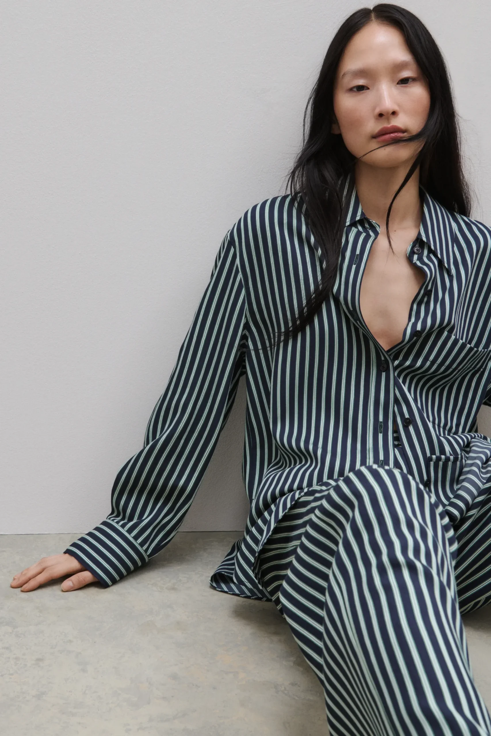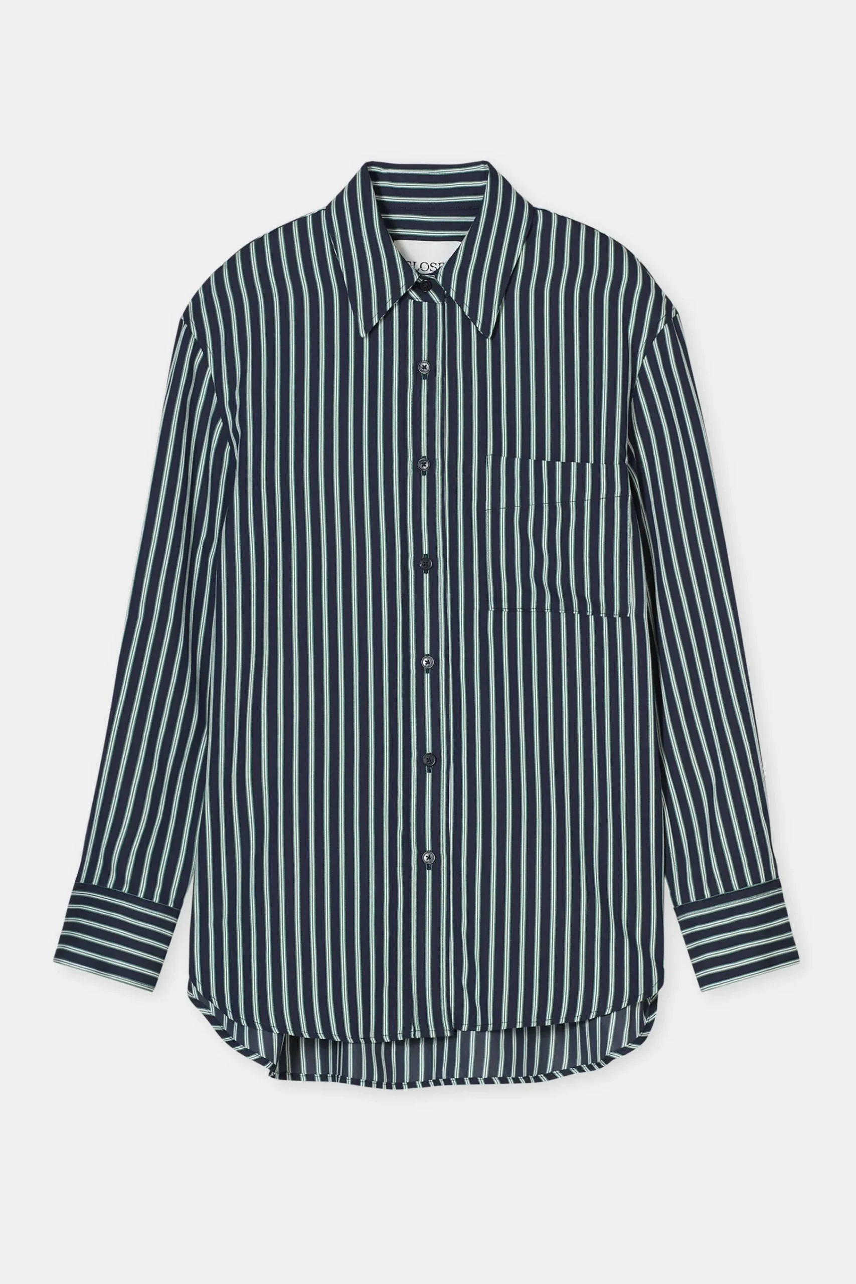 Aus fließender Premium Viskose-Mischung in italienischer Qualität: Unsere Hemdbluse im Relaxed Fit. Das Streifendesi…