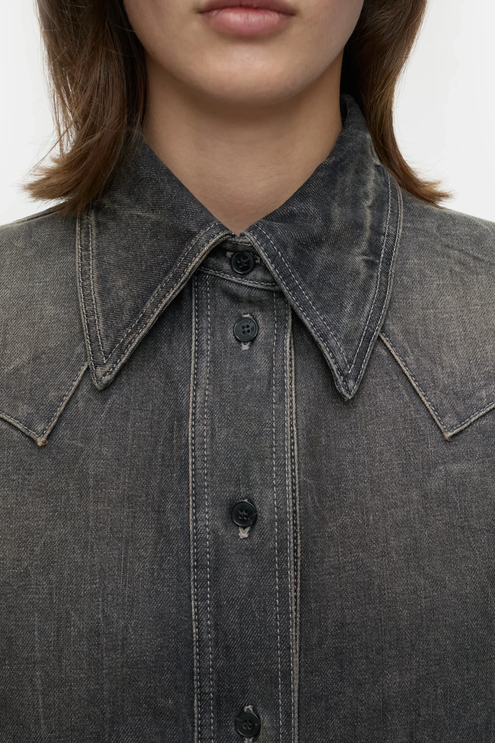 Ein Teil unserer Eco-Denim-Linie A BETTER BLUE: unsere schmale Western-Bluse mit Knöpfen in Horn-Optik. In kräftigem…