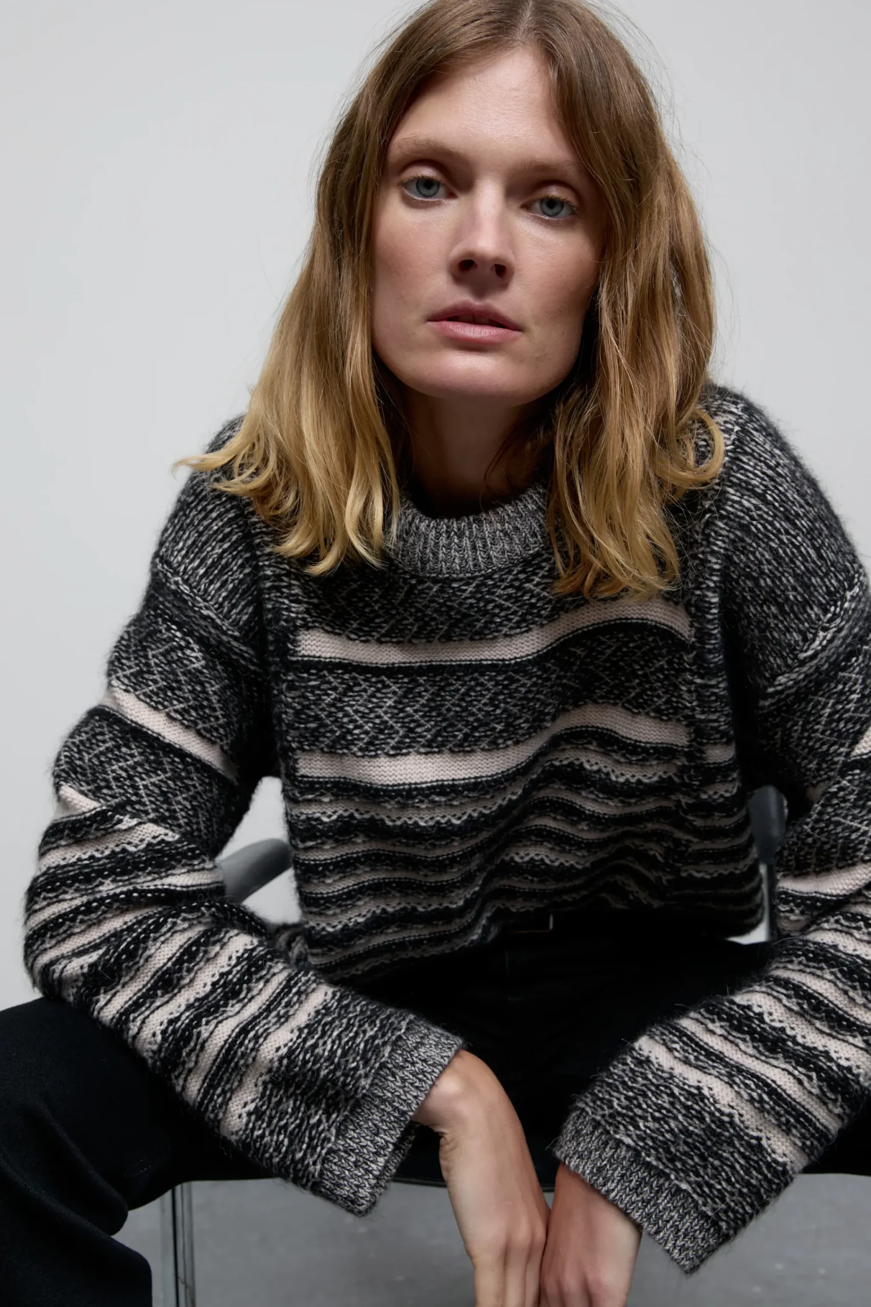 Unser Pullover aus weichem Alpaka-Mix, hat ein auf links gedrehtes Fair-Isle-Muster. Im Relaxed Fit aus mittelschwerem…