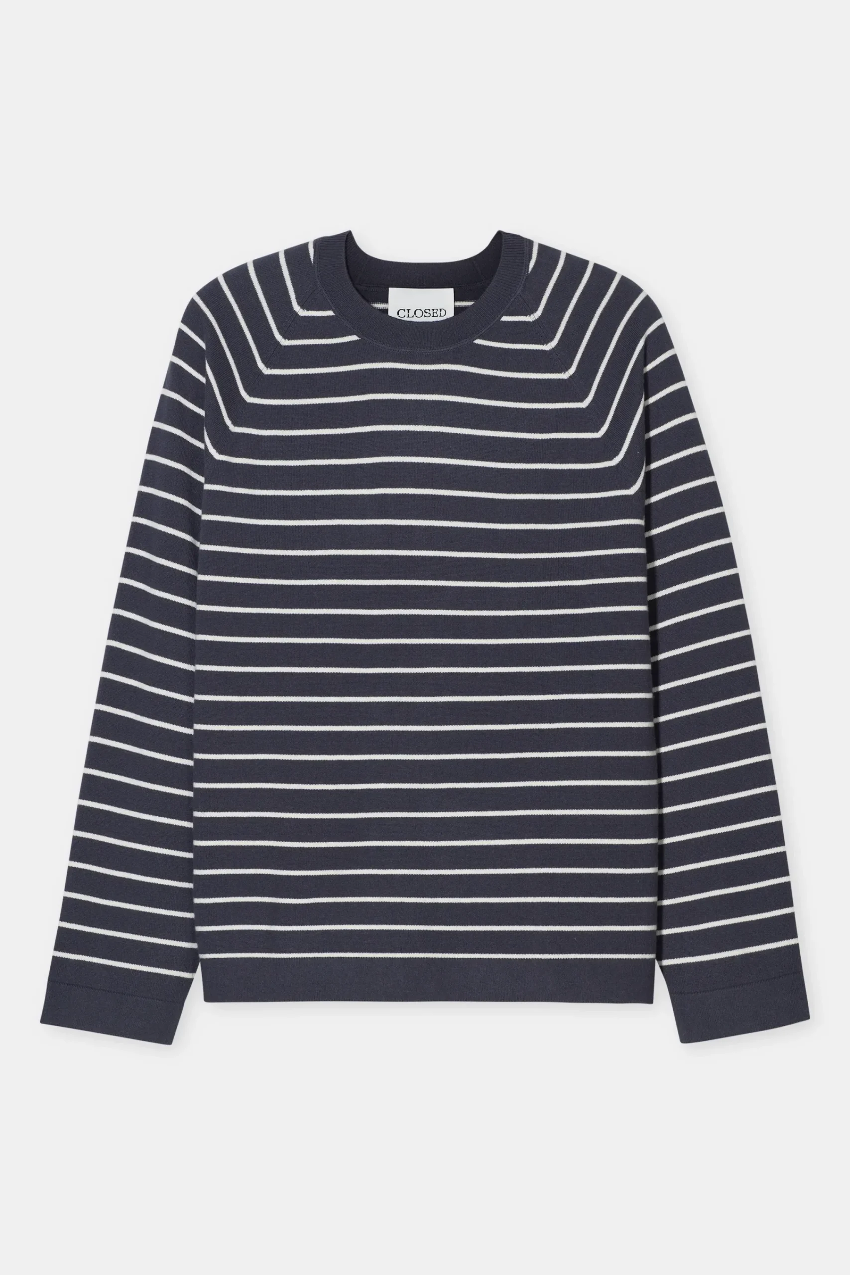 Für diesen Pullover mit Marine-Streifen haben wir hochwertiges Garn aus Bio-Baumwolle und Kaschmir ausgewählt. Mit s…