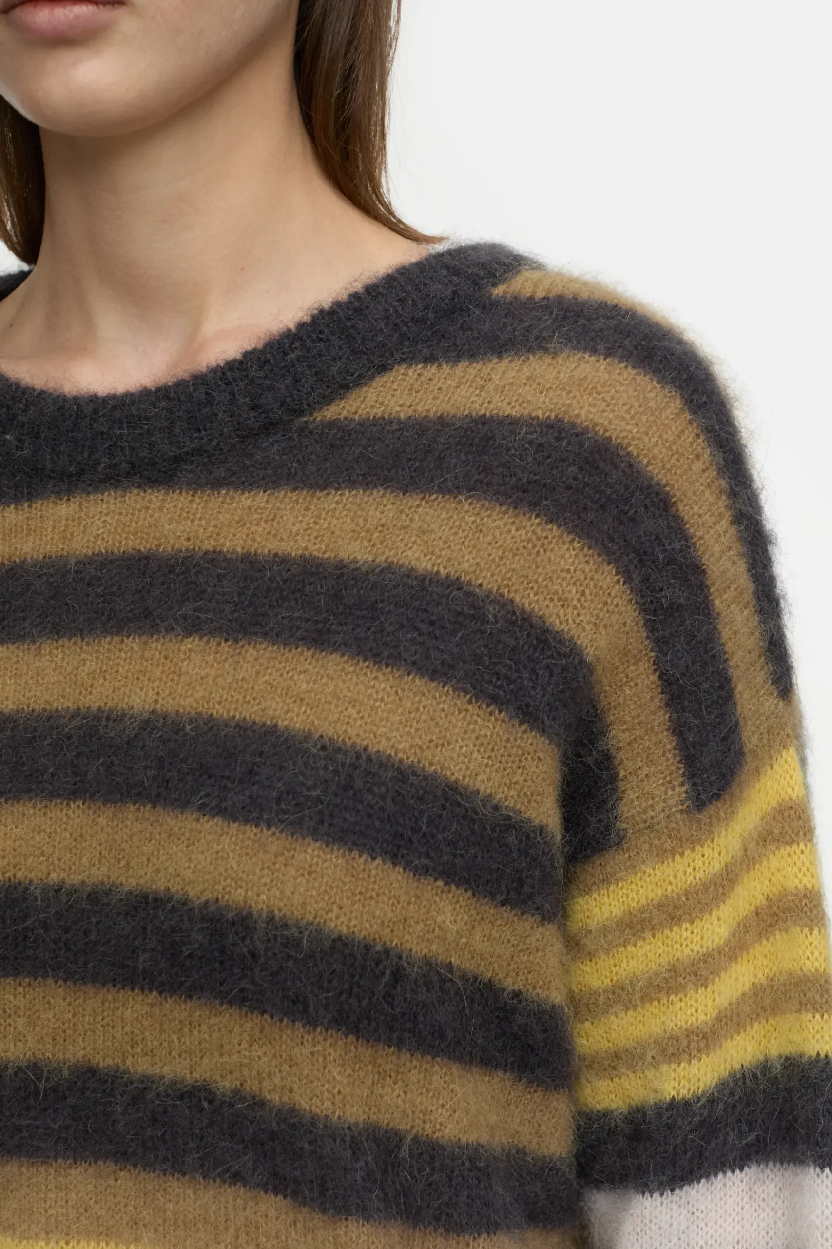 Inspiriert von der Streifen-Kunst des irischen Malers Sean Scully ist dieser Grobstrick-Pullover (5 gg) aus einer hoch…