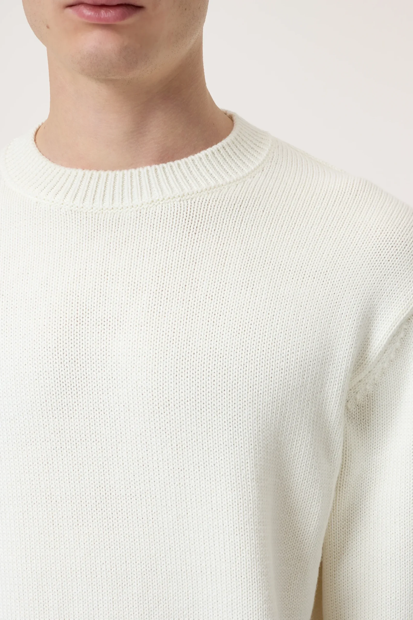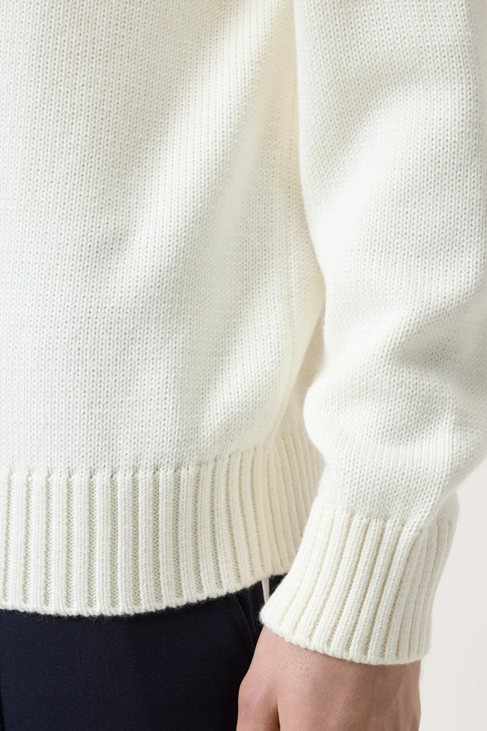 Mit Rippbündchen am Rundhalsauschnitt sowie geripptem Ärmel- und Saumabschluss: Pullover aus hochwertigem Woll-Baumw…
