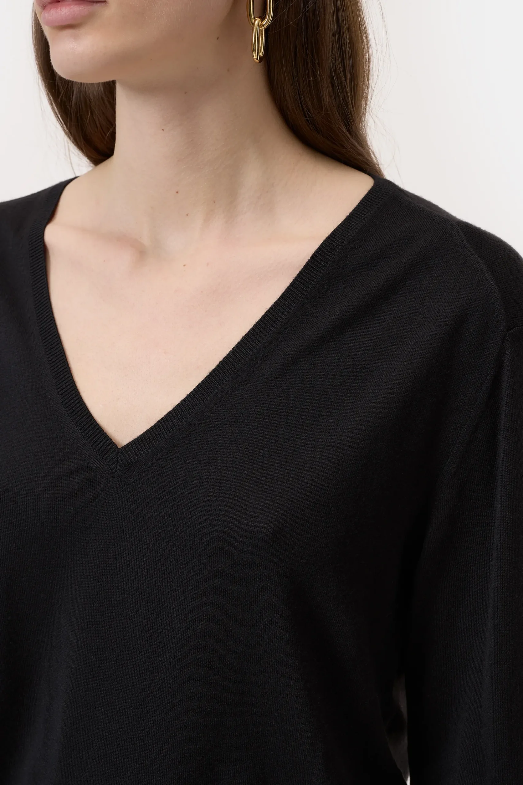 Unser Feinstrickpullover (14 gg) mit V-Ausschnitt ist aus Merinowolle mit leichtem Seidenanteil gefertigt. Dieser gibt…