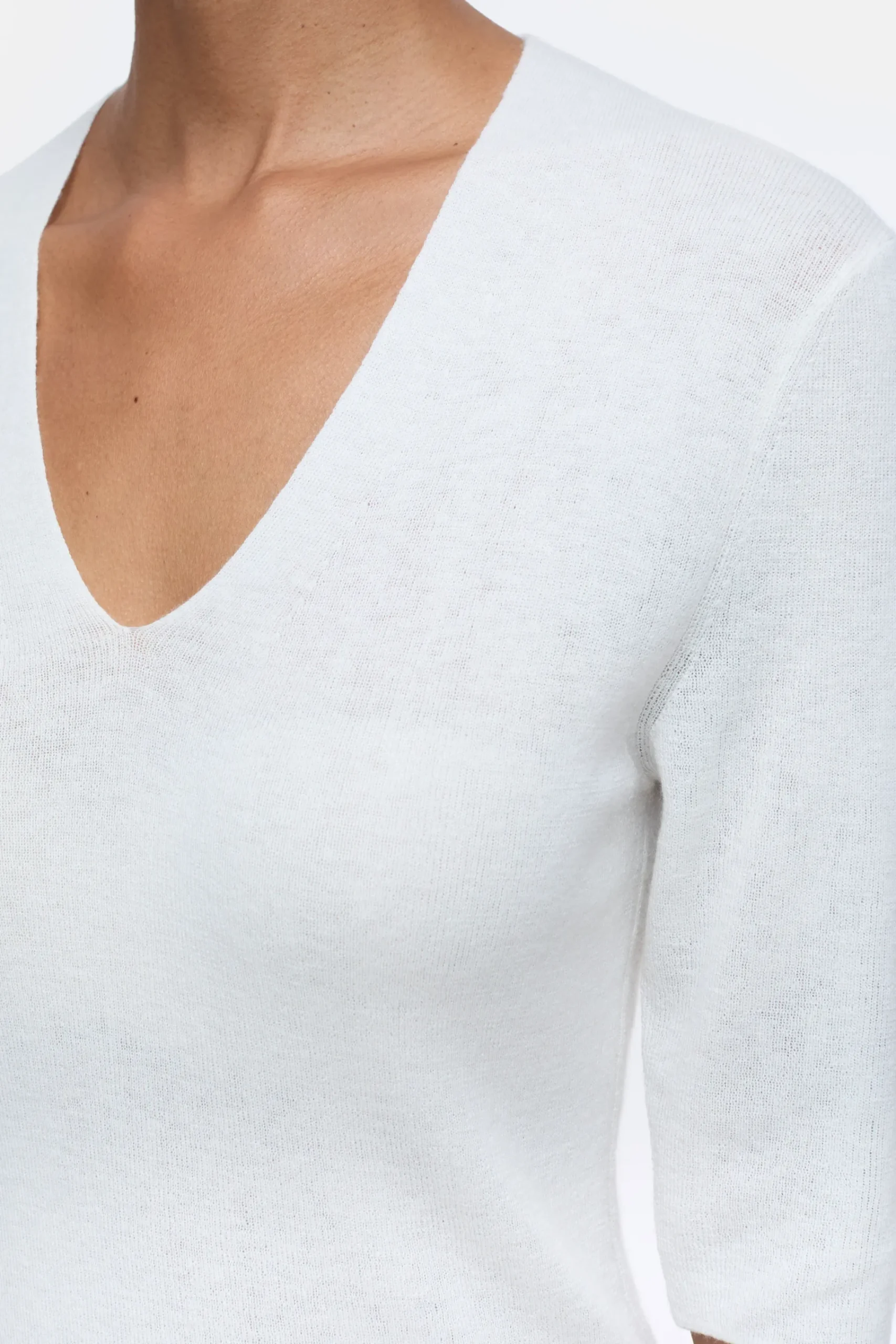 Feinstes und leichtes Kaschmir-Mix-Garn (16 gg) ist für unseren Kurzarmpullover mit V-Ausschnitt verwebt. Durch einen…