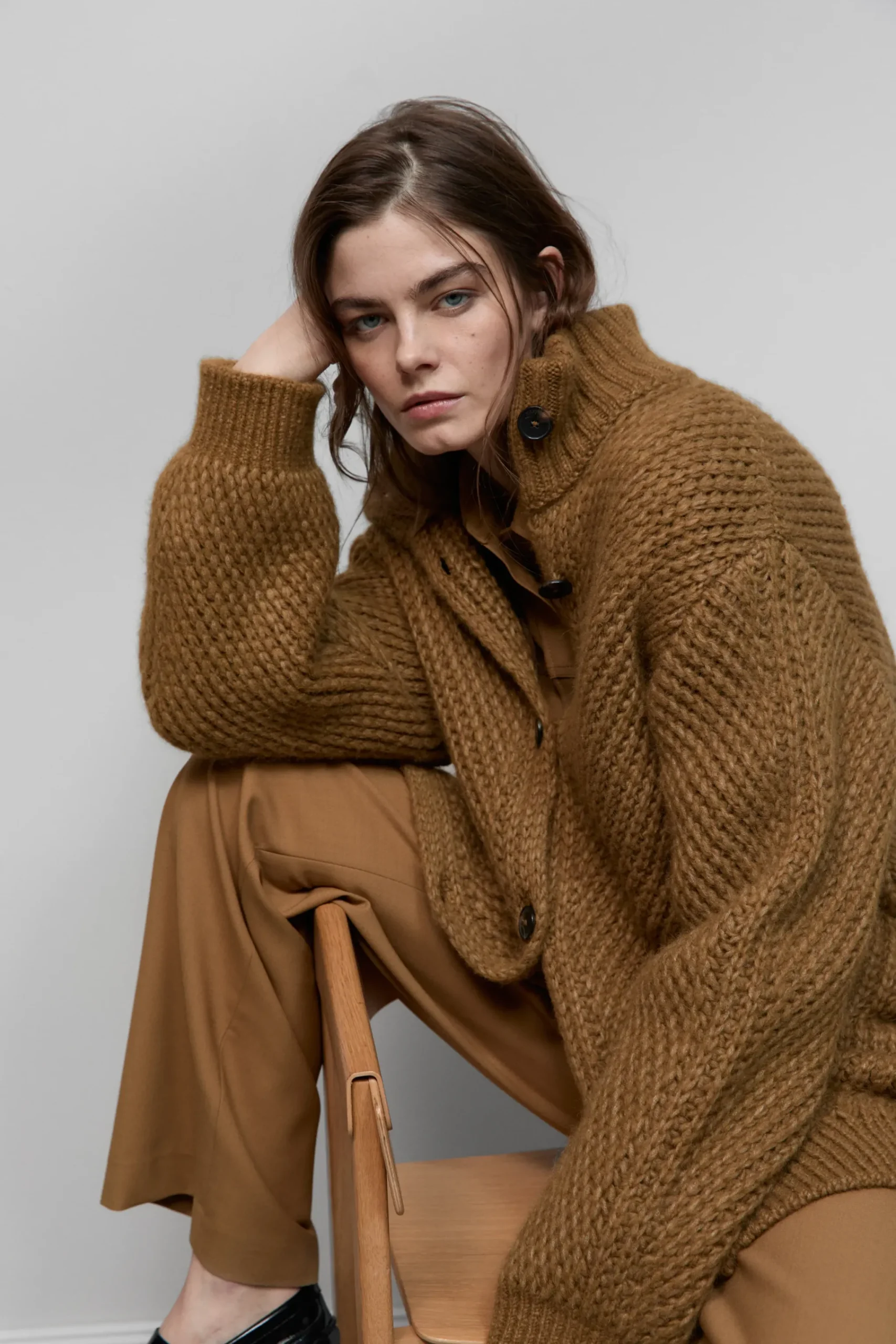 Der lange Cardigan in grobem Fisherman’s Rib (3 gg) ist aus supersoftem Alpaka-Mix in italienischer Qualität gestrick…