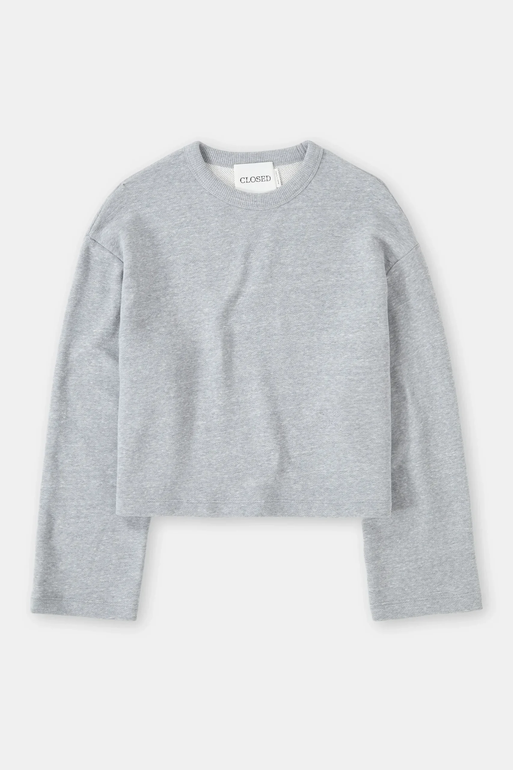 Unser kurzes Sweatshirt in A-Linie mit weiten Ärmeln besteht aus meliertem, weichem Felpa Jersey mit kleiner Logo-Sti…