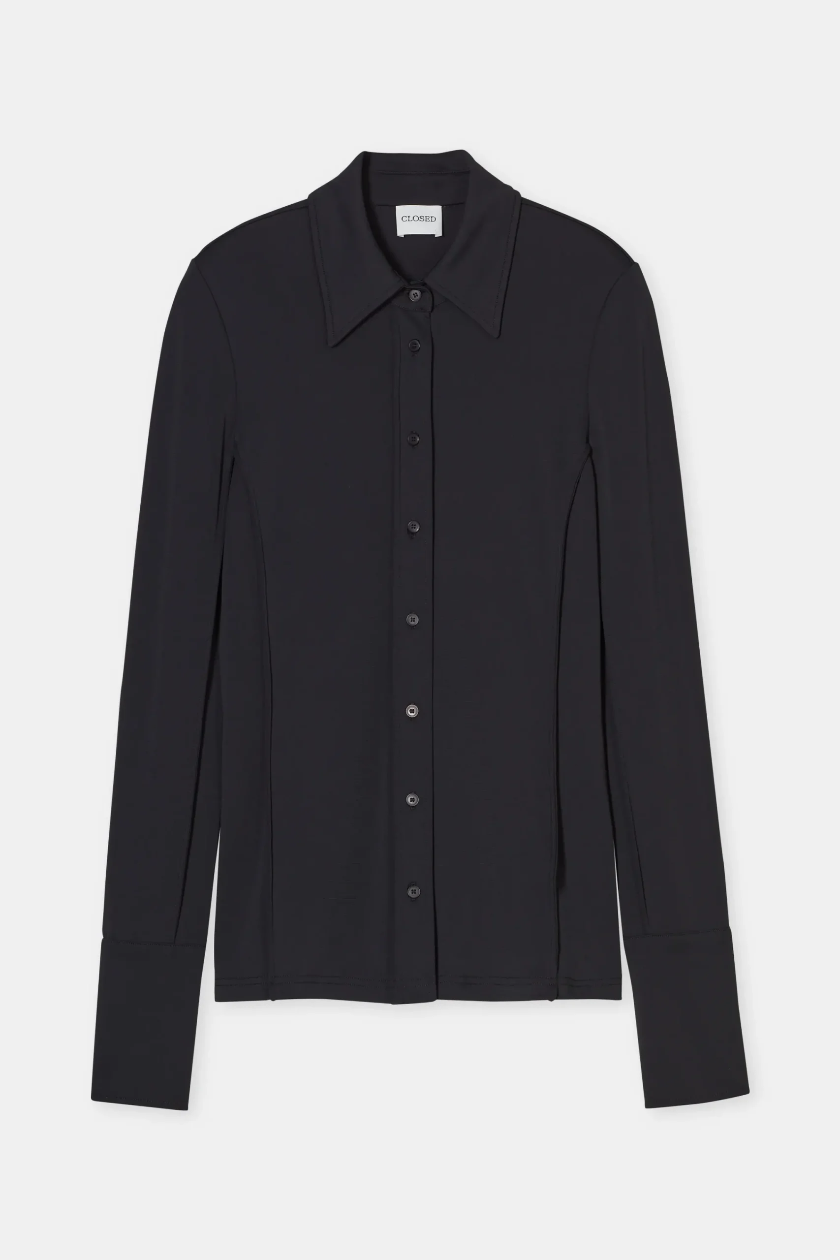 Unsere taillierte Bluse besteht aus hochwertigem Crêpe Jersey in portugiesischer Qualität. Im Slim Fit mit großen M…