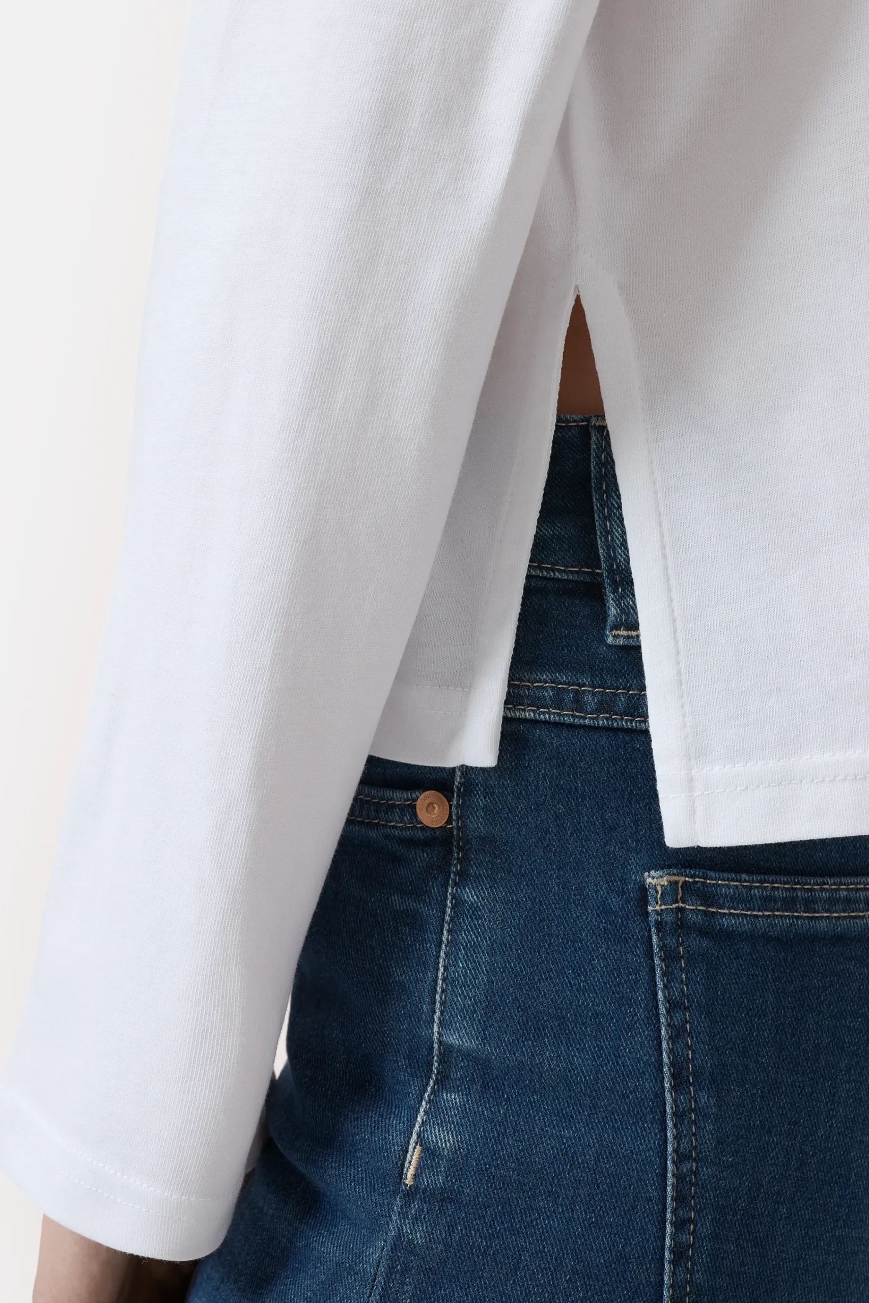 Dieses verkürzte Langarmshirt aus reiner Bio-Baumwolle hat einen weichen Griff und eine cleane Struktur. Das Shirt ha…