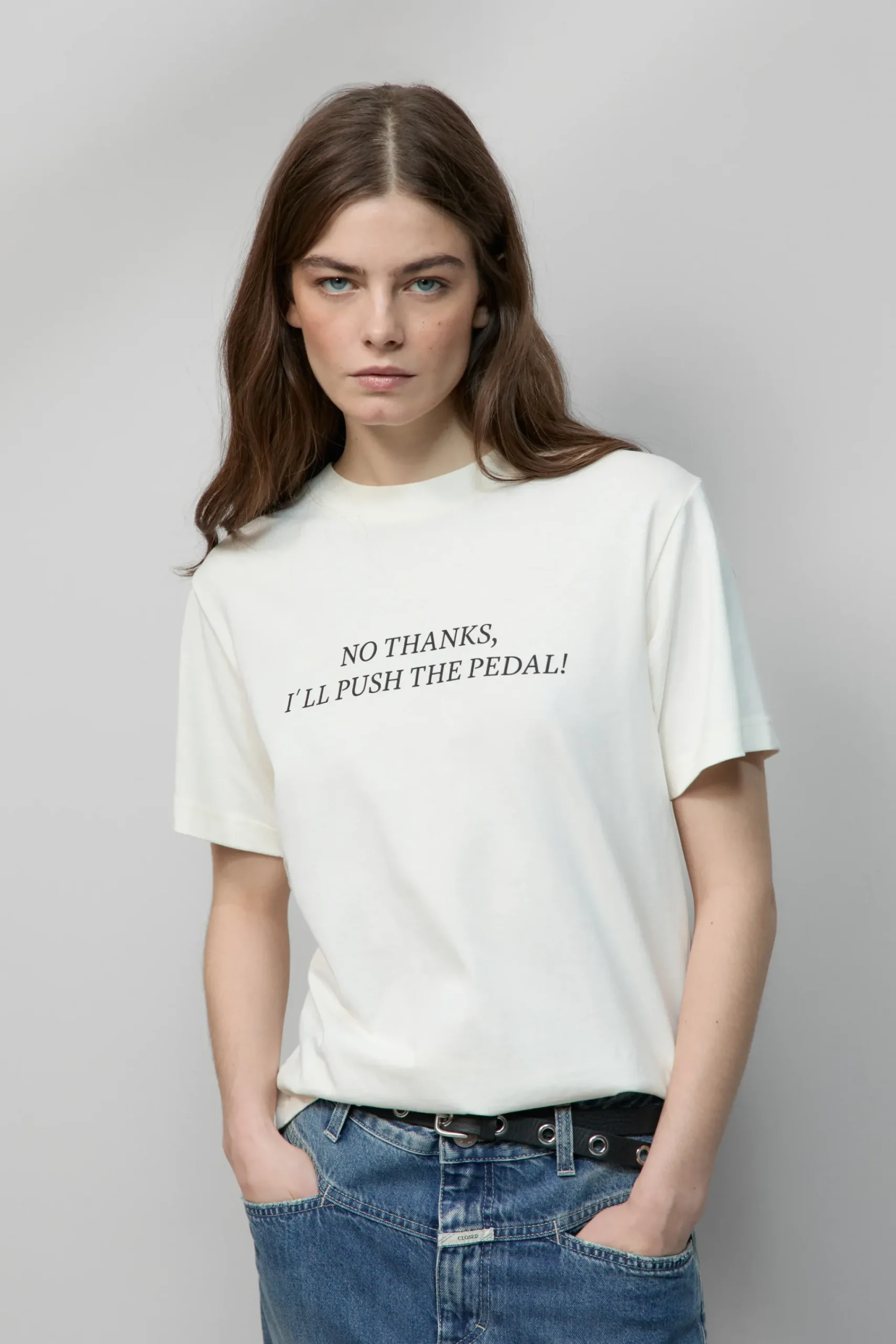 Unser T-Shirt trägt einen Motto-Print sowie eine Stickerei auf der Vorder- und Rückseite. Cleane Jersey-Qualität mi…