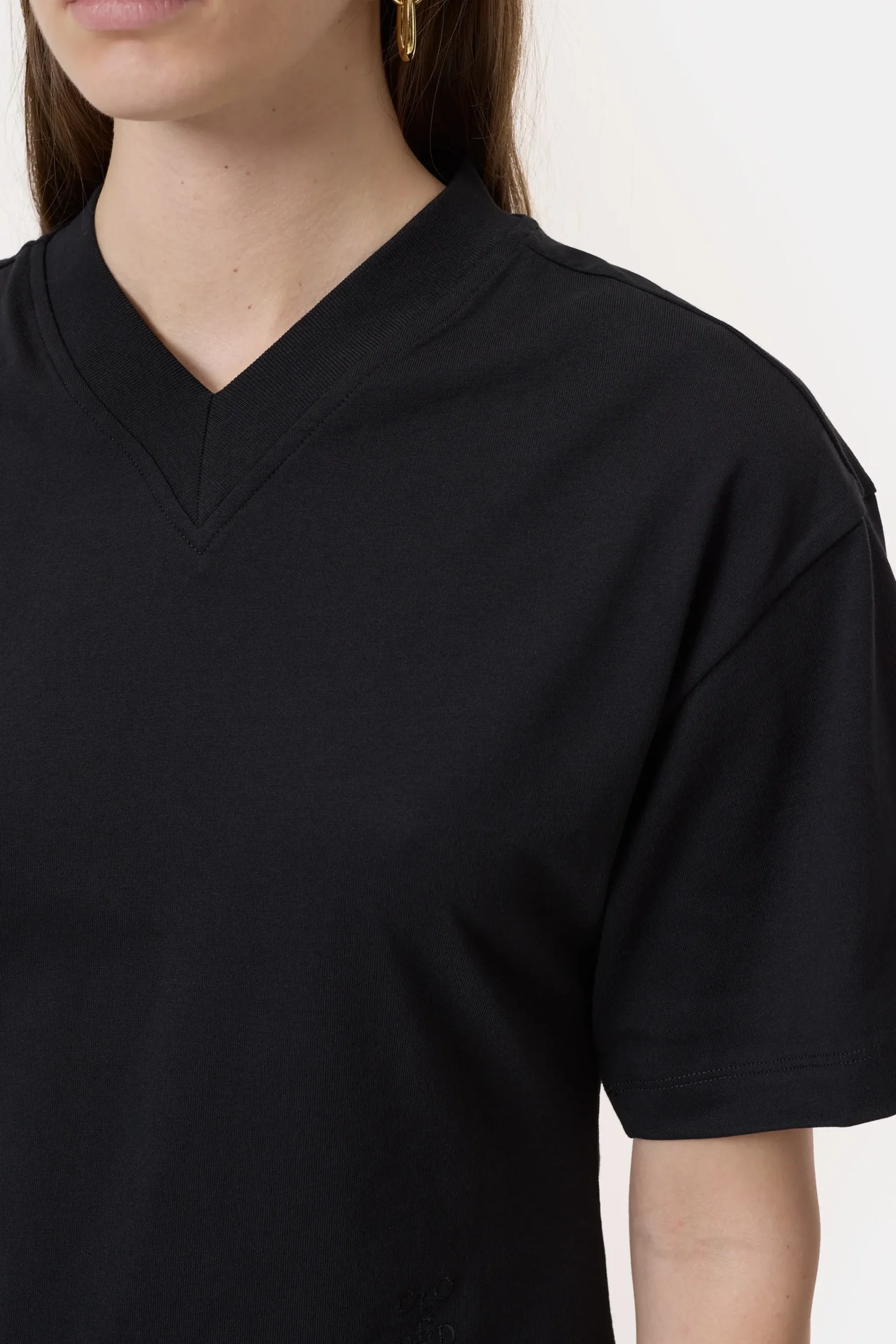 Dieses kurze T-Shirt mit V-Ausschnitt ist aus reiner Bio-Baumwolle gefertigt. Es hat einen weichen Griff, eine saubere…