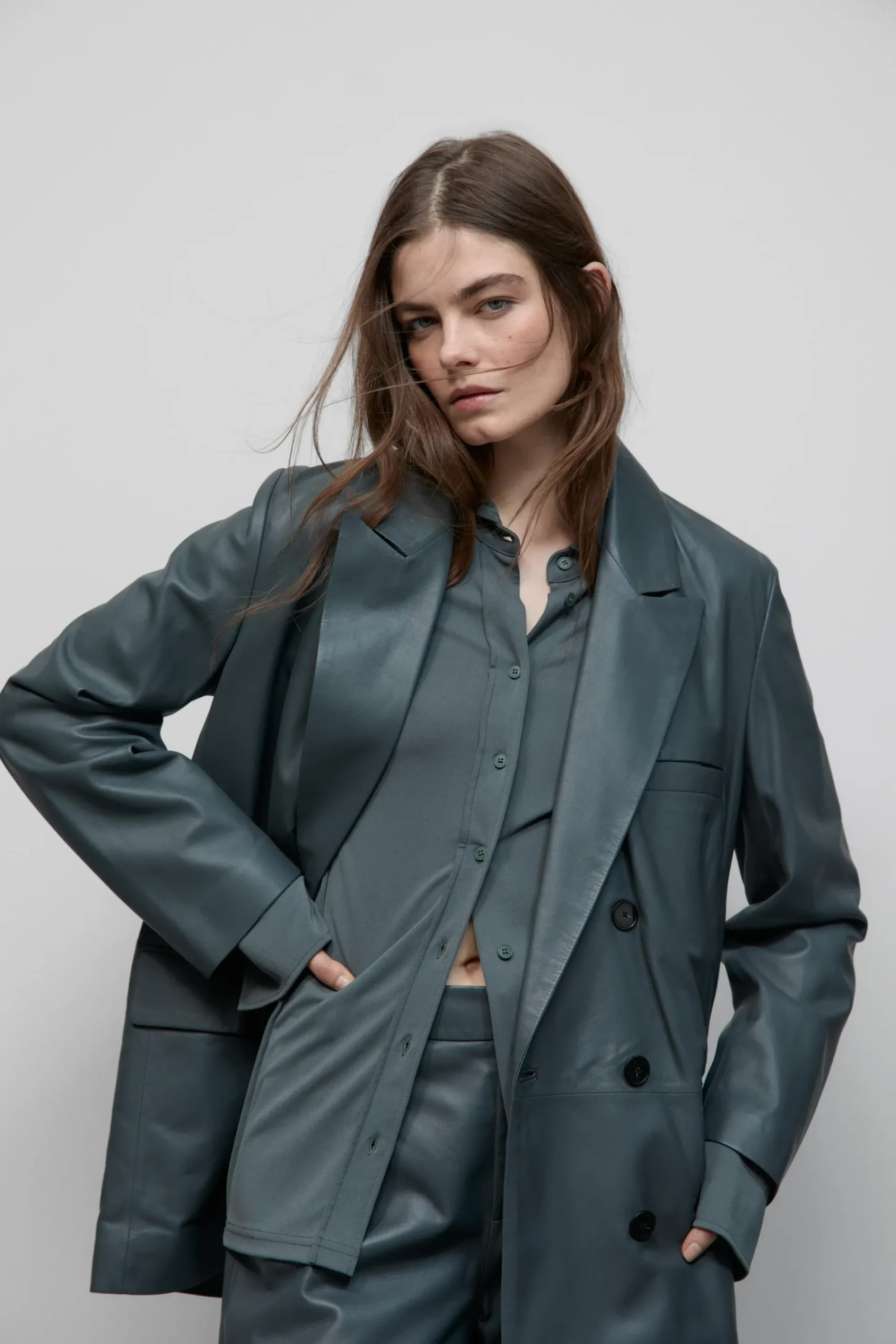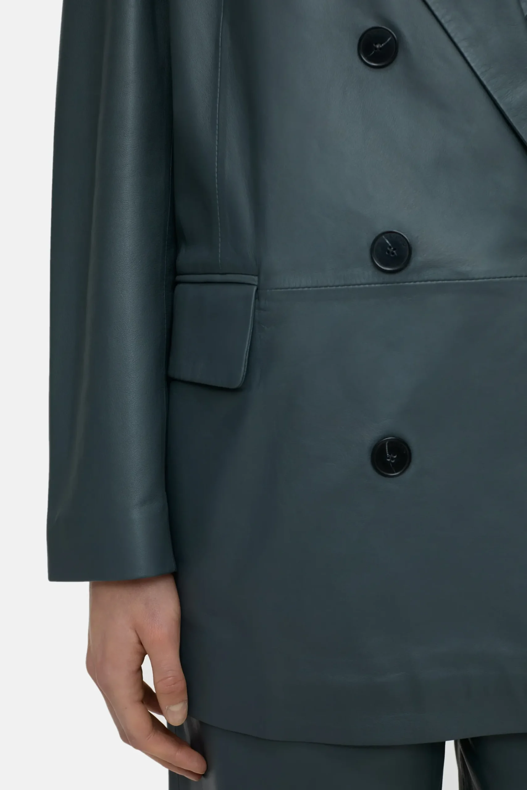 Aus feinstem Nappaleder, das chromfrei gegerbt und mit sanftem Finish veredelt wurde: unser doppelreihiger Oversize-Bl…