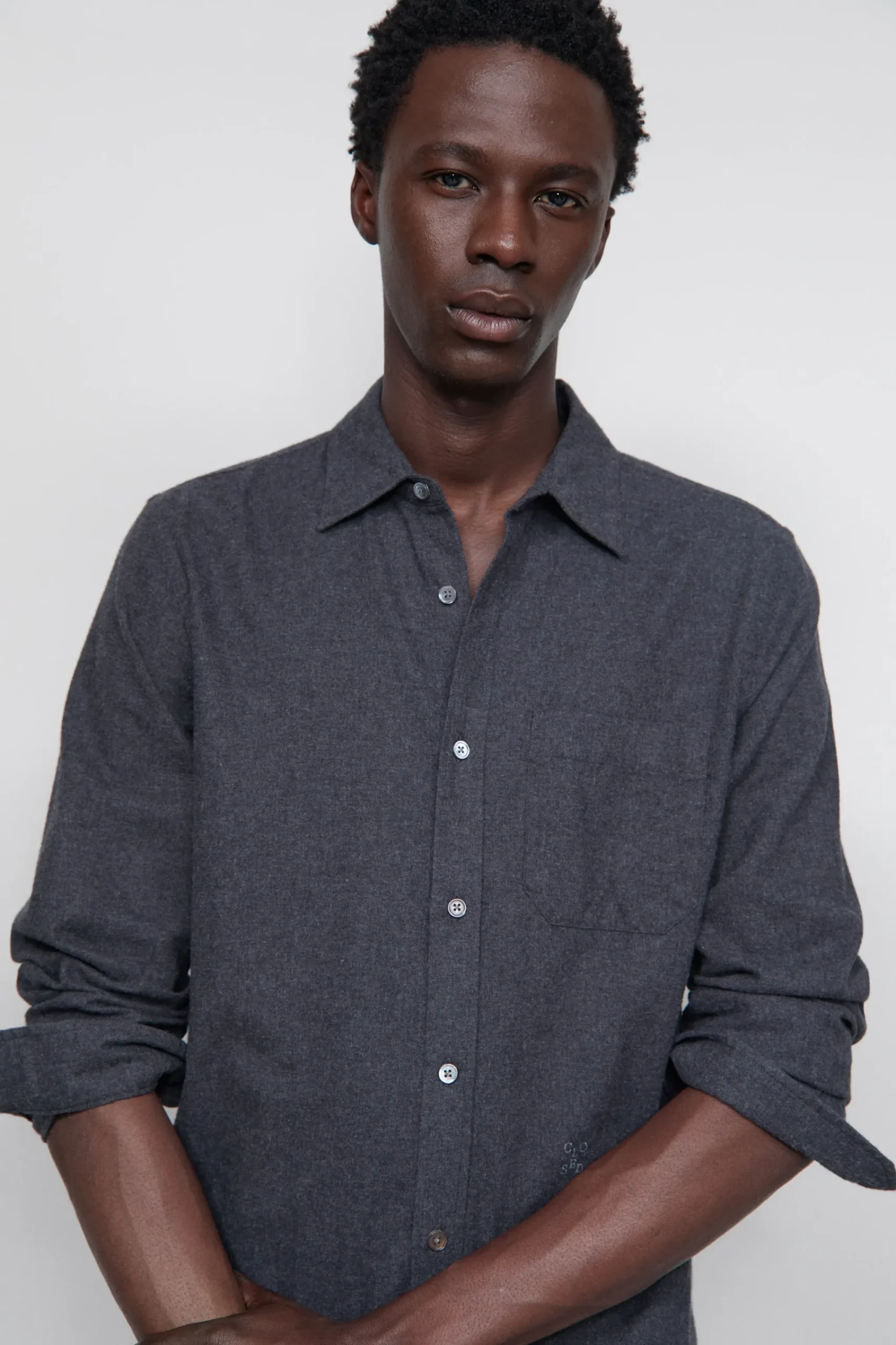 Dieses klassische Hemd mit Kragen, durchgehender Knopfleiste mit Perlmuttknöpfen und einer Brusttasche besteht aus re…