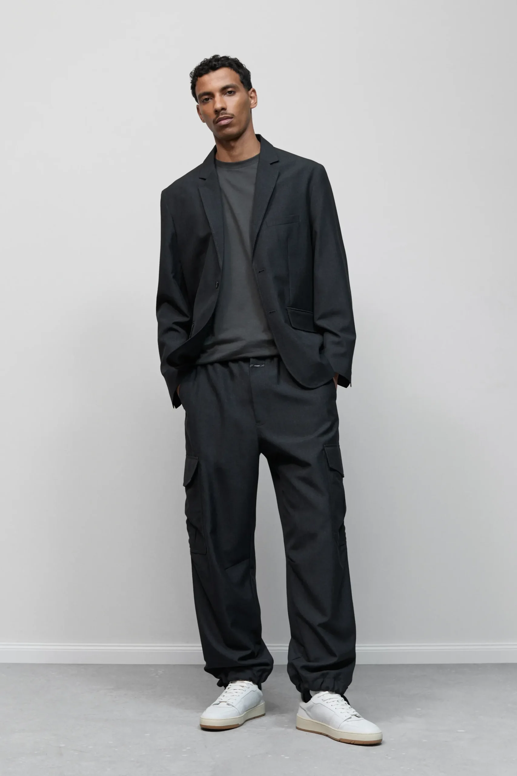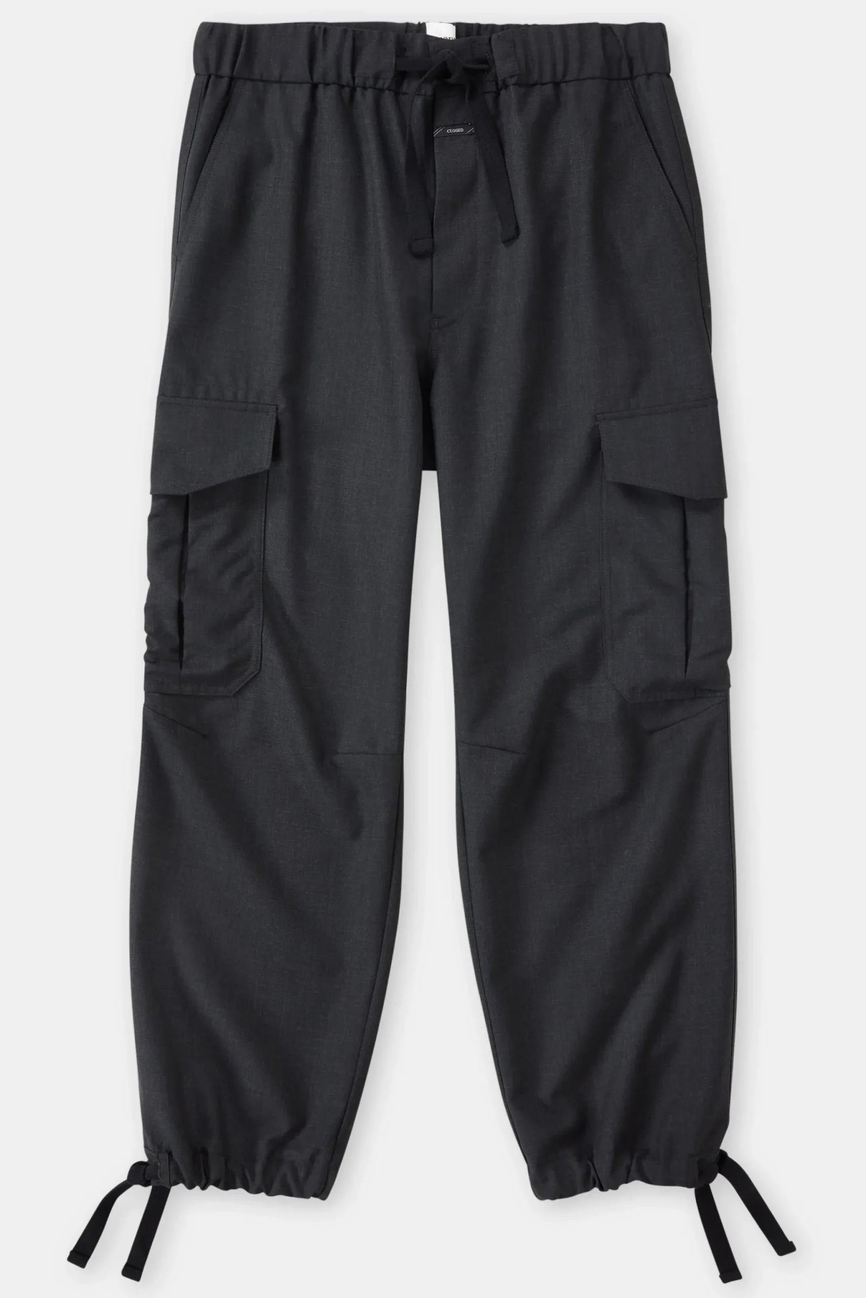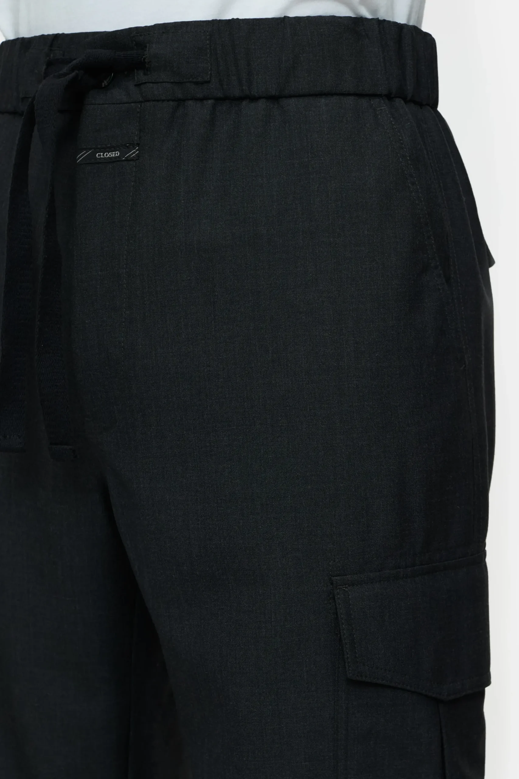 Unser Hosenmodell im Loose Fit besteht aus einem leichten technischen Stoff mit Woll-Anteil, der sich durch einen Mela…