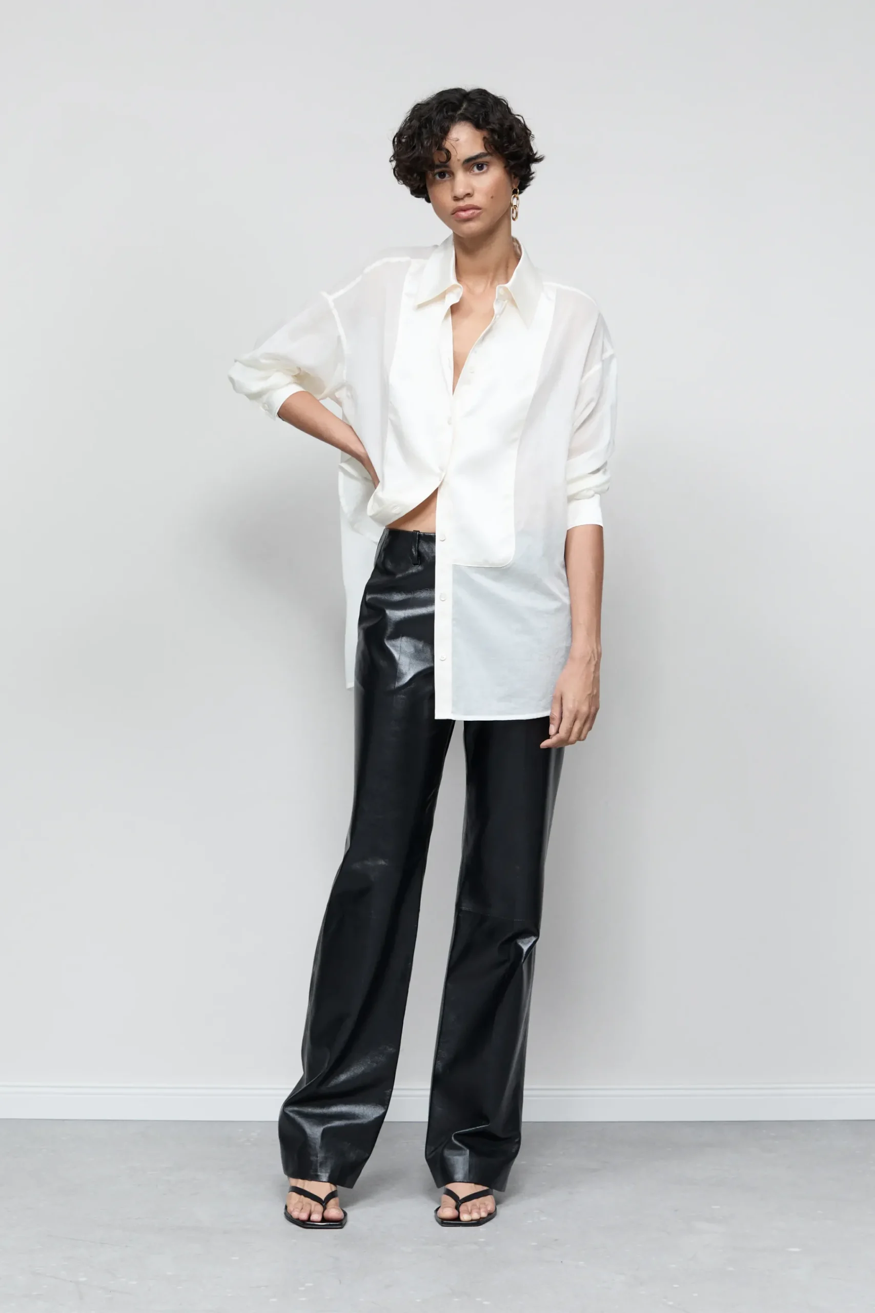 Unser neues Hosenmodell ist aus feinstem, schwarzem Lammleder mit papierähnlicher Haptik und leicht glänzender Oberf…