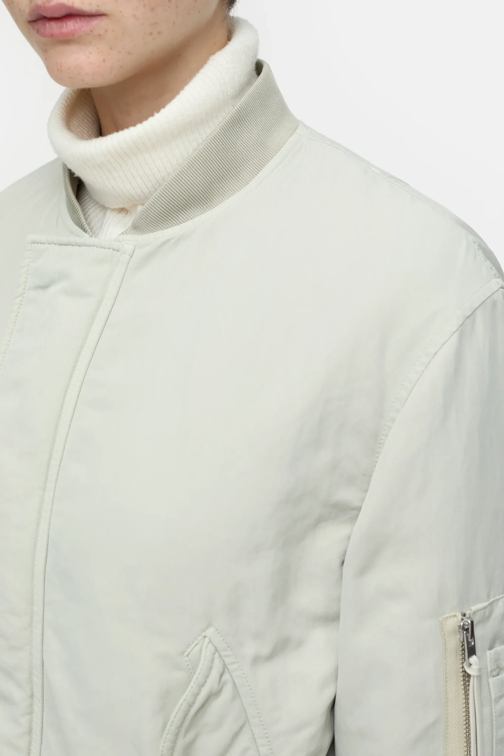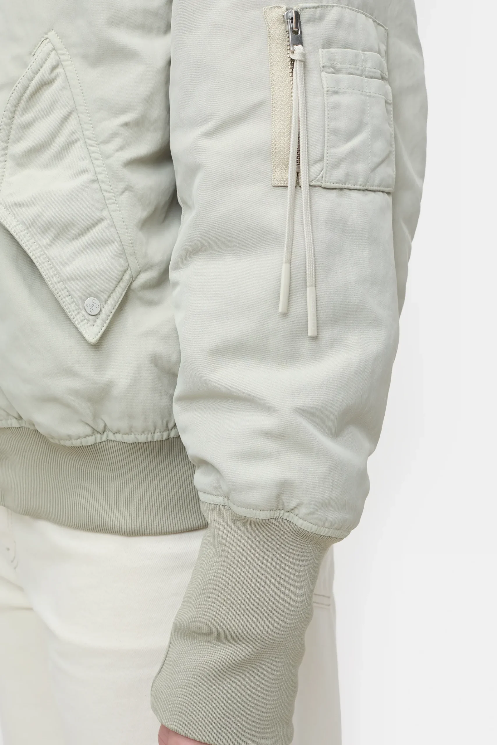 Unsere Bomberjacke aus italienischer Nylon-Qualität in moderner Garment-Dye-Optik hat Rippbündchen am Rundhals, an…