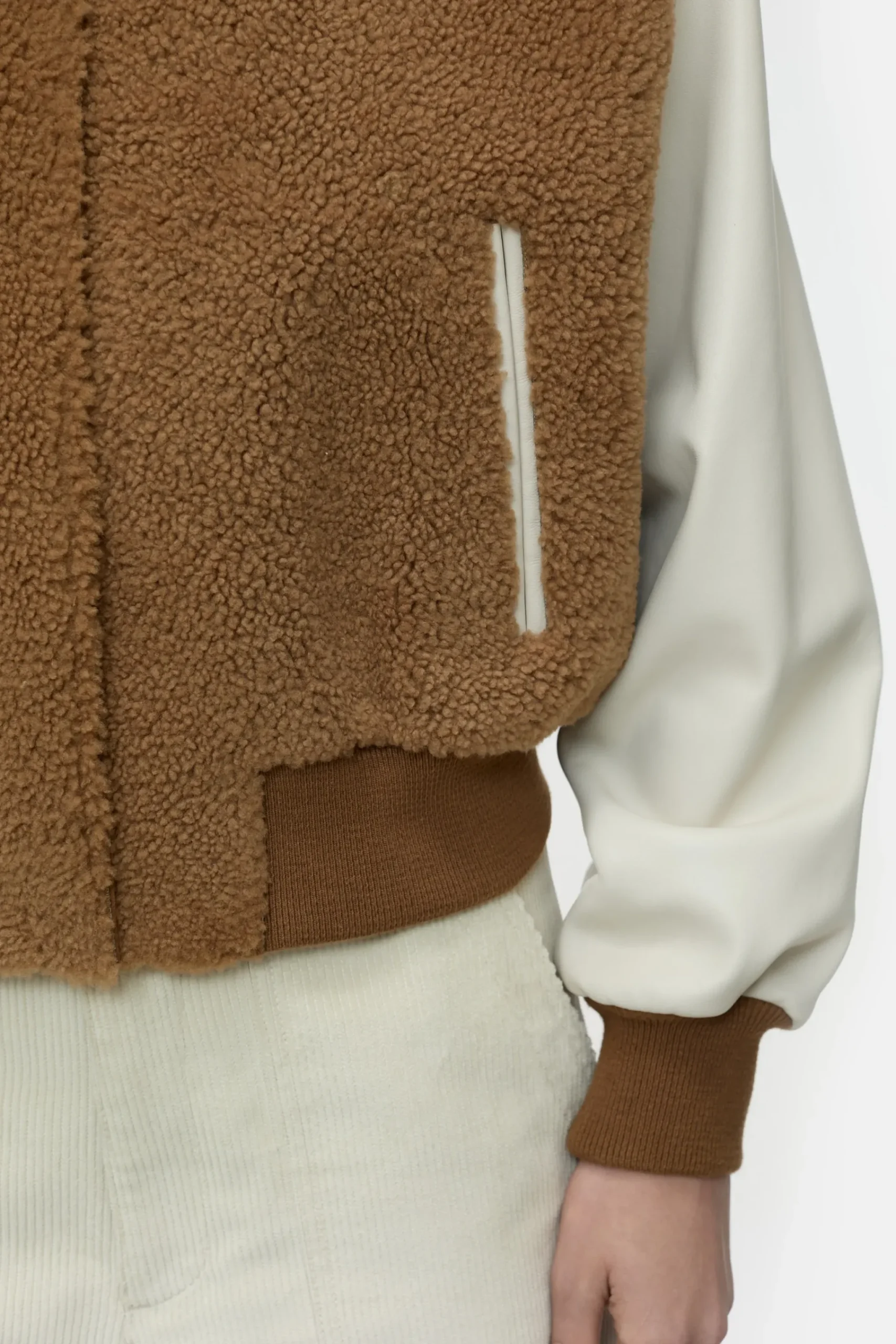 Besonders hochwertige Collegejacke aus feinstem Lammfell und Glattleder in spanischer Qualität. Mit seitlichen Tasche…