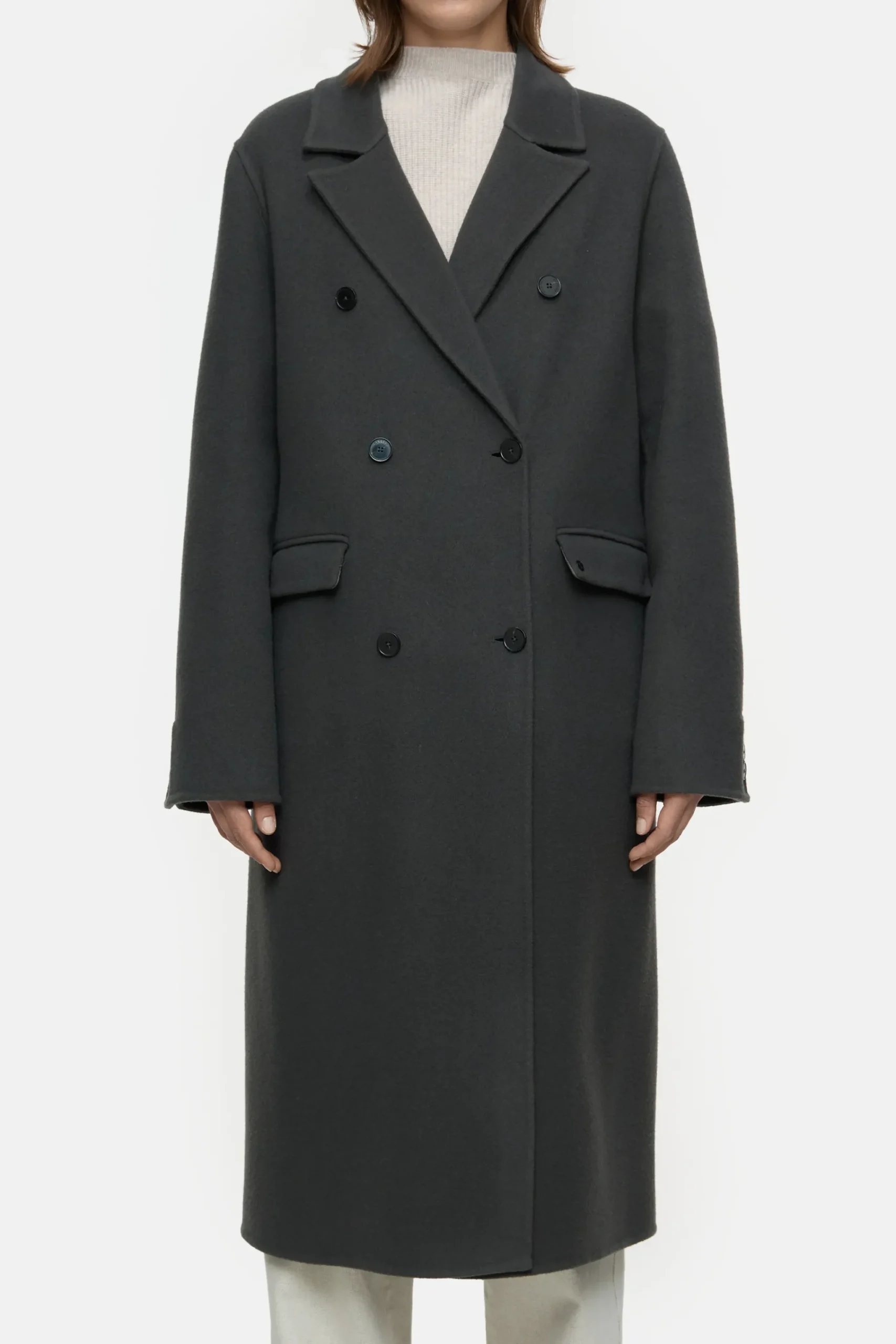 Dieser doppelreihiger Mantel ist aus einer besonders edlen Schurwoll-Kaschmir-Komposition gefertigt, welche ihm eine s…