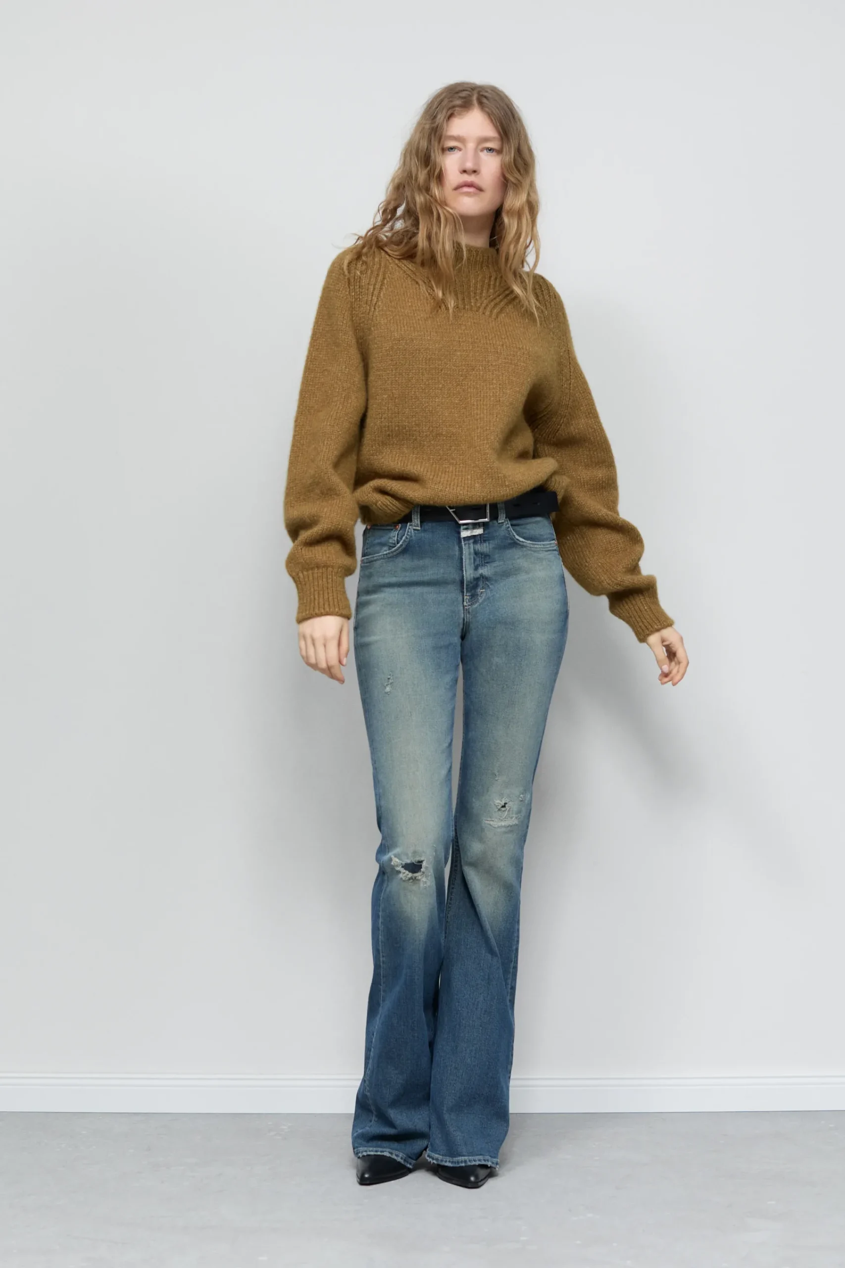 Im Skinny Fit mit hohem Bund und ausgestellter Beinform: unsere Jeans aus mittelschwerem Super-Stretch-Denim (11 oz.) …