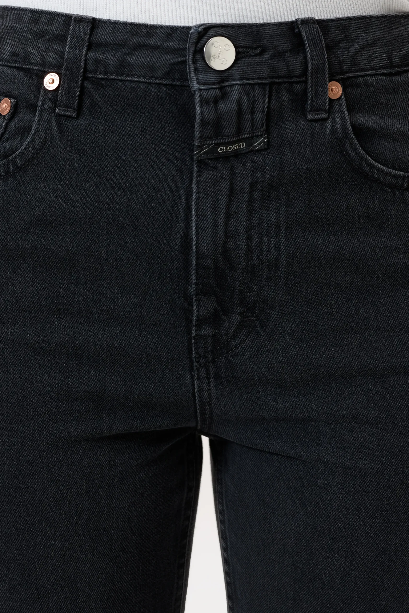 Hergestellt aus reiner Bio-Baumwolle: Unsere 5-Pocket-Jeans im Straight Fit mit hohem Bund. Aus schwarzem, mittelschwe…