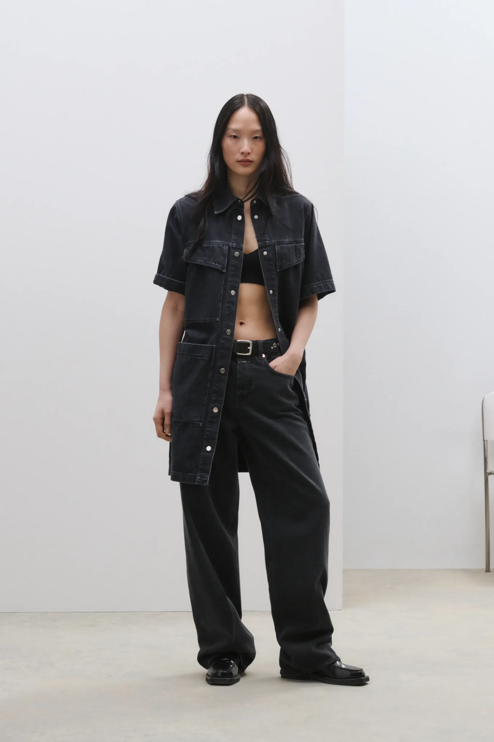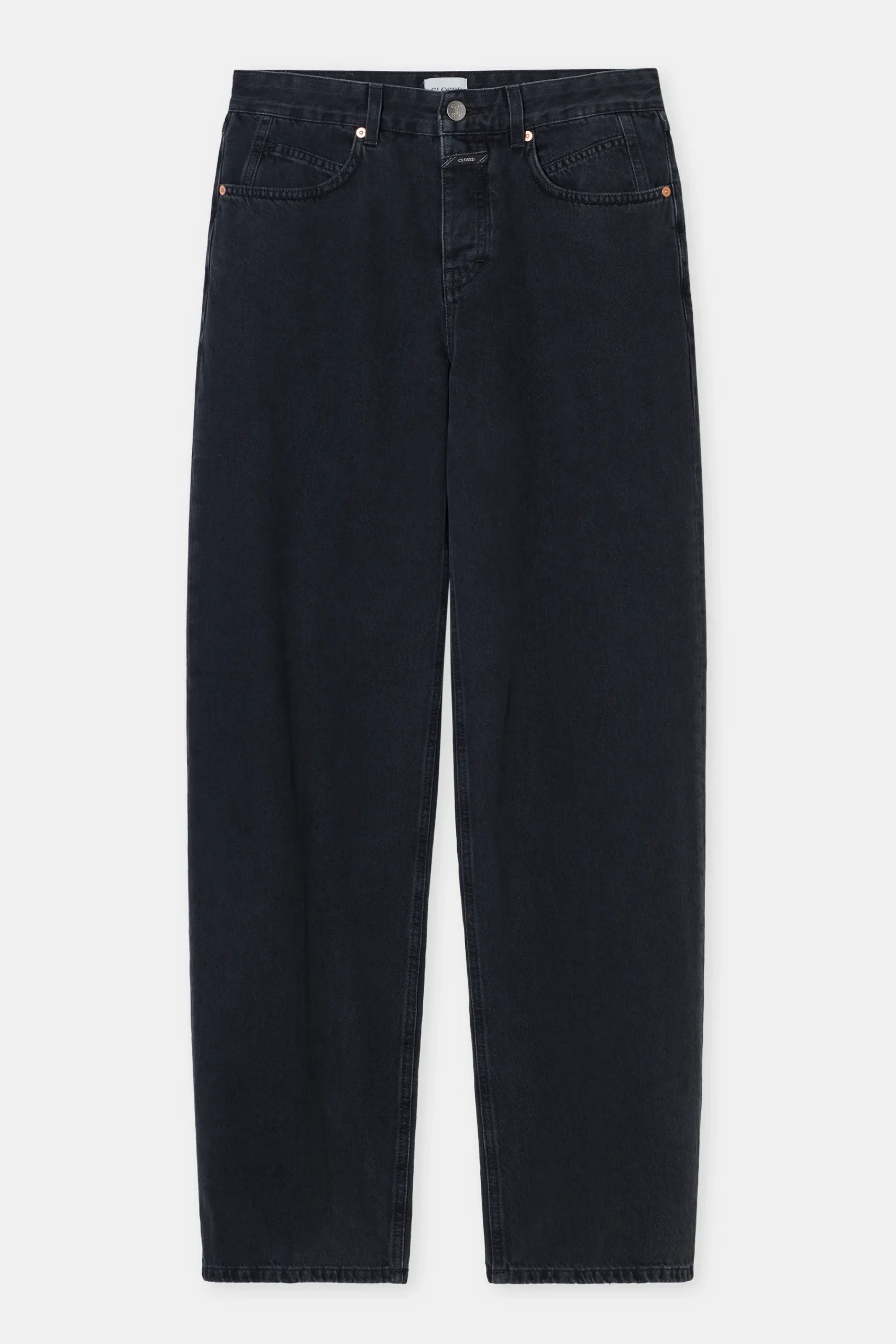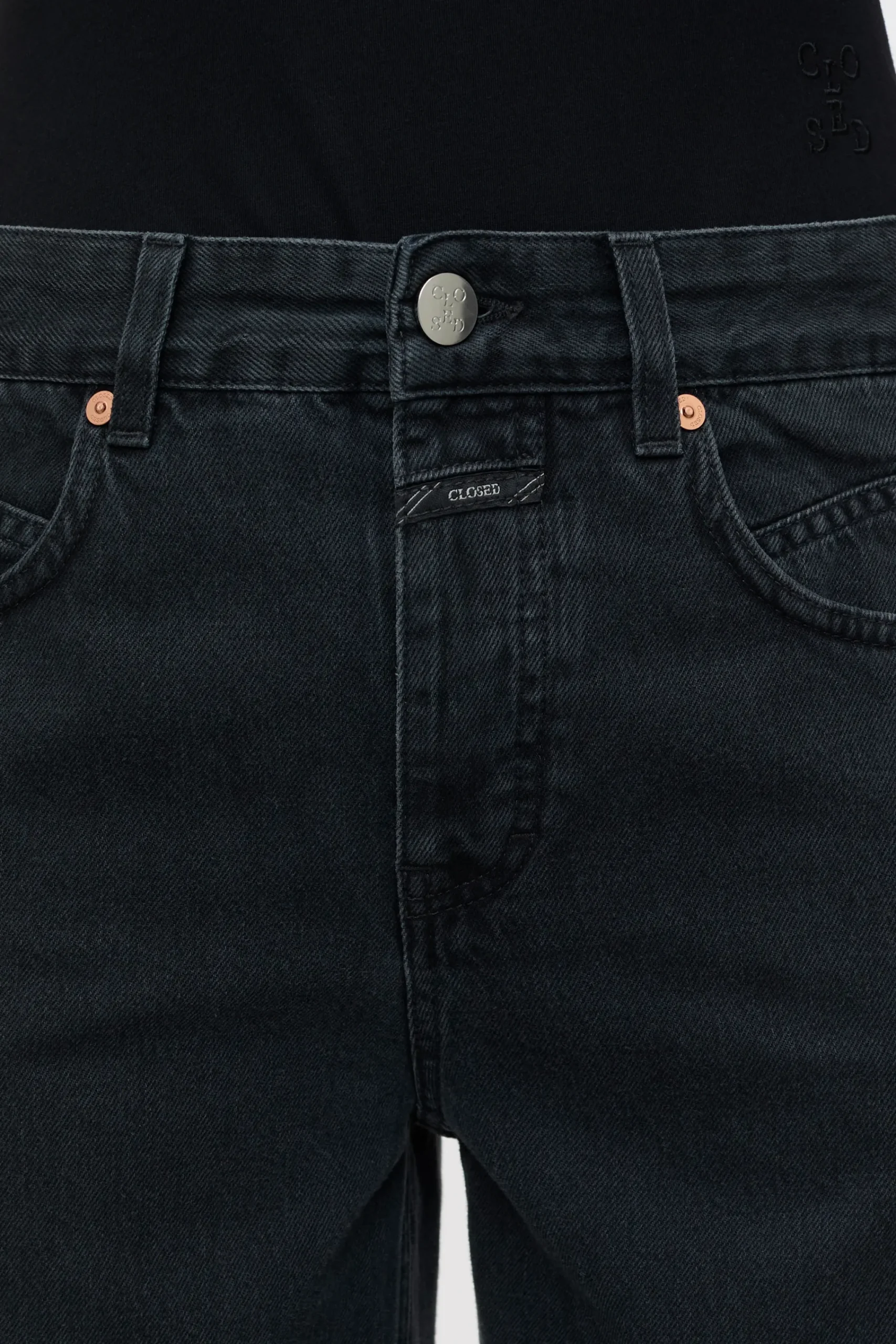Denim Style Nikka im Wide Fit mit Knopfleiste, gefertigt in Italien aus mittelschwerem schwarzem Denim (11 oz.) mit Sa…