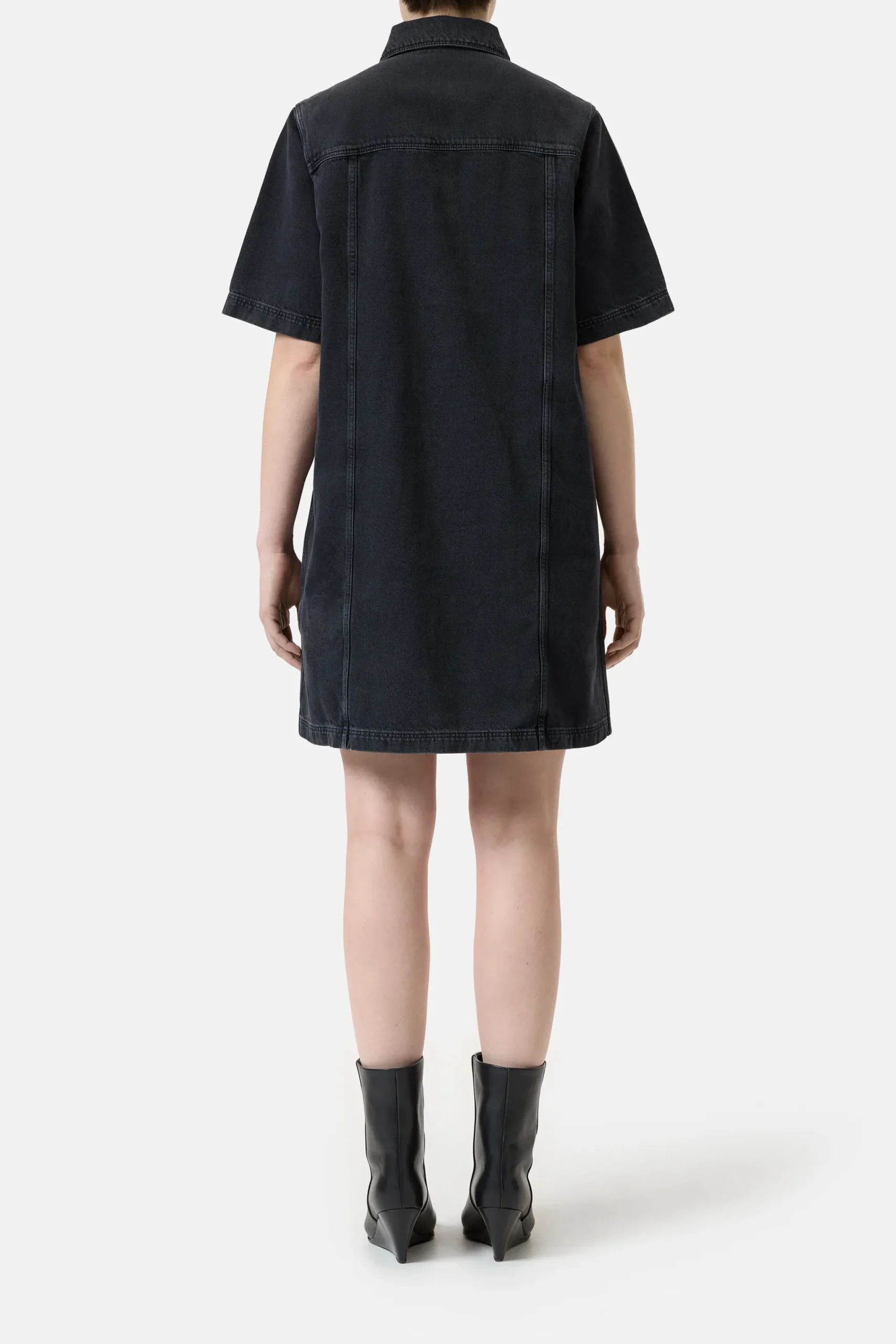 Unser kurzes Jeanskleid im Relaxed Fit mit Logo-Knöpfen und großen Worker-Taschen ist aus mittelschwerem Rigid Denim…