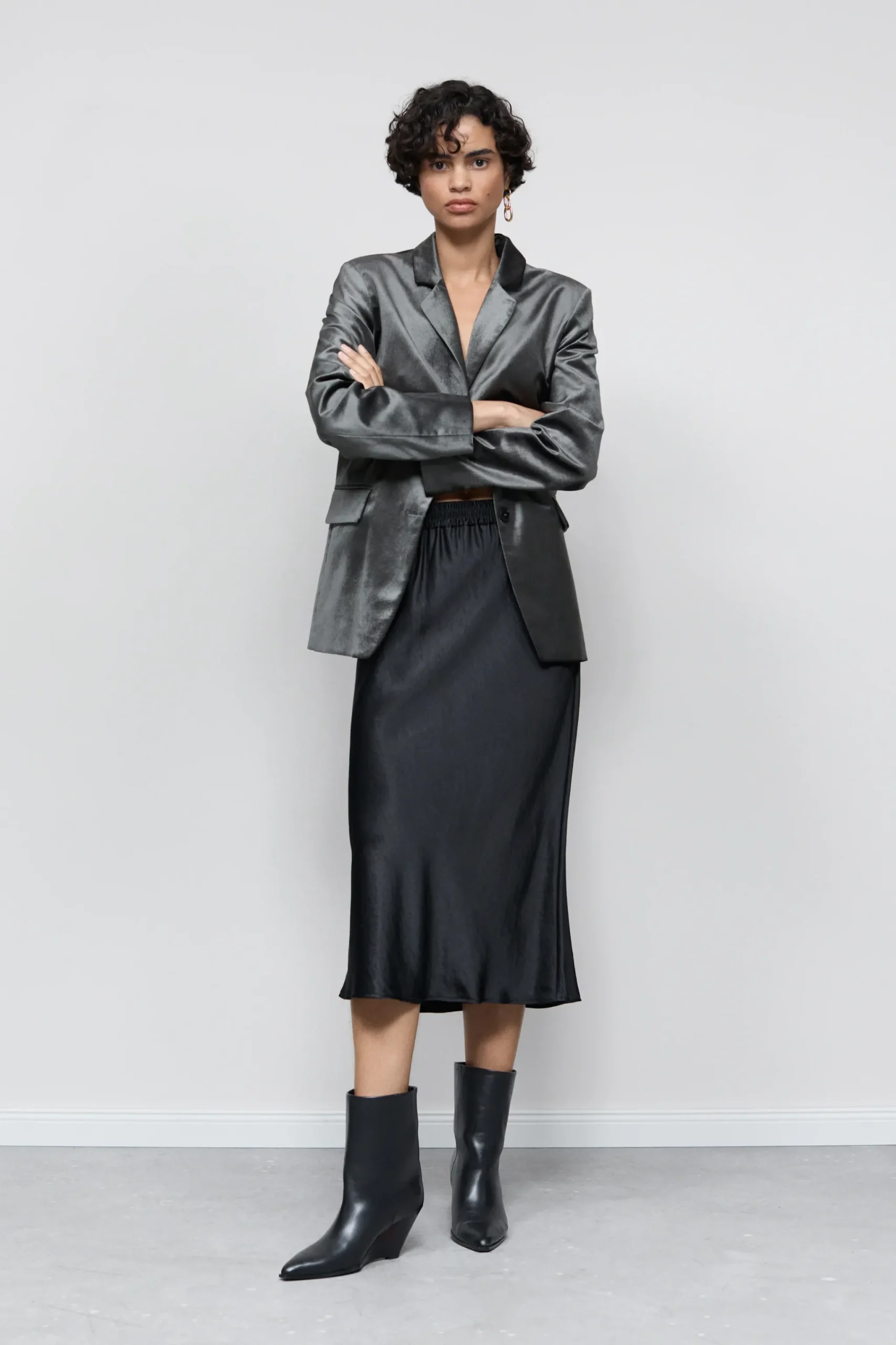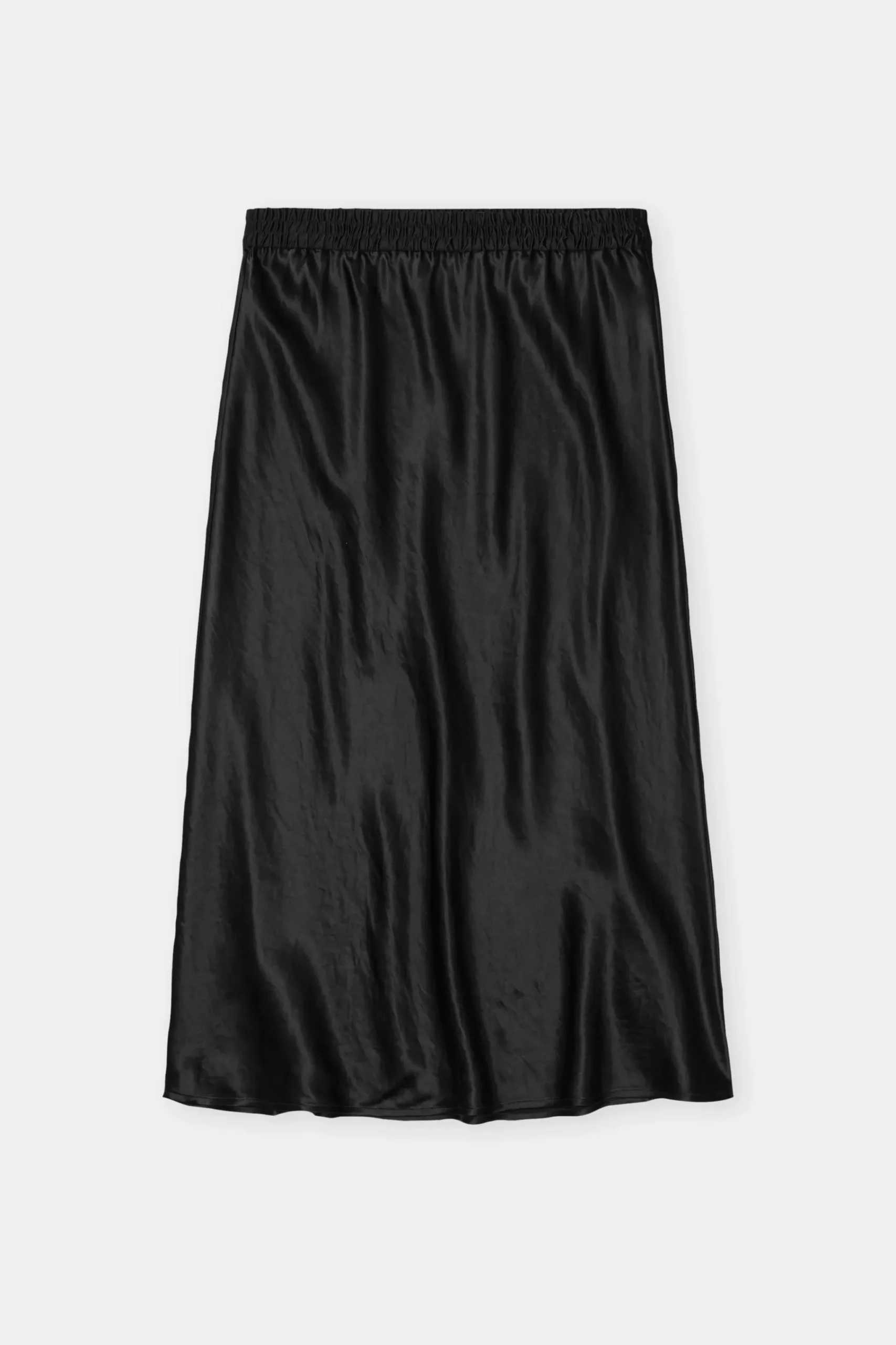 Dieser Midirock hat eine sanft schwingende A-Linie in fließendem Satin. Mit Stretchbund und geradem Saumabschluss. De…