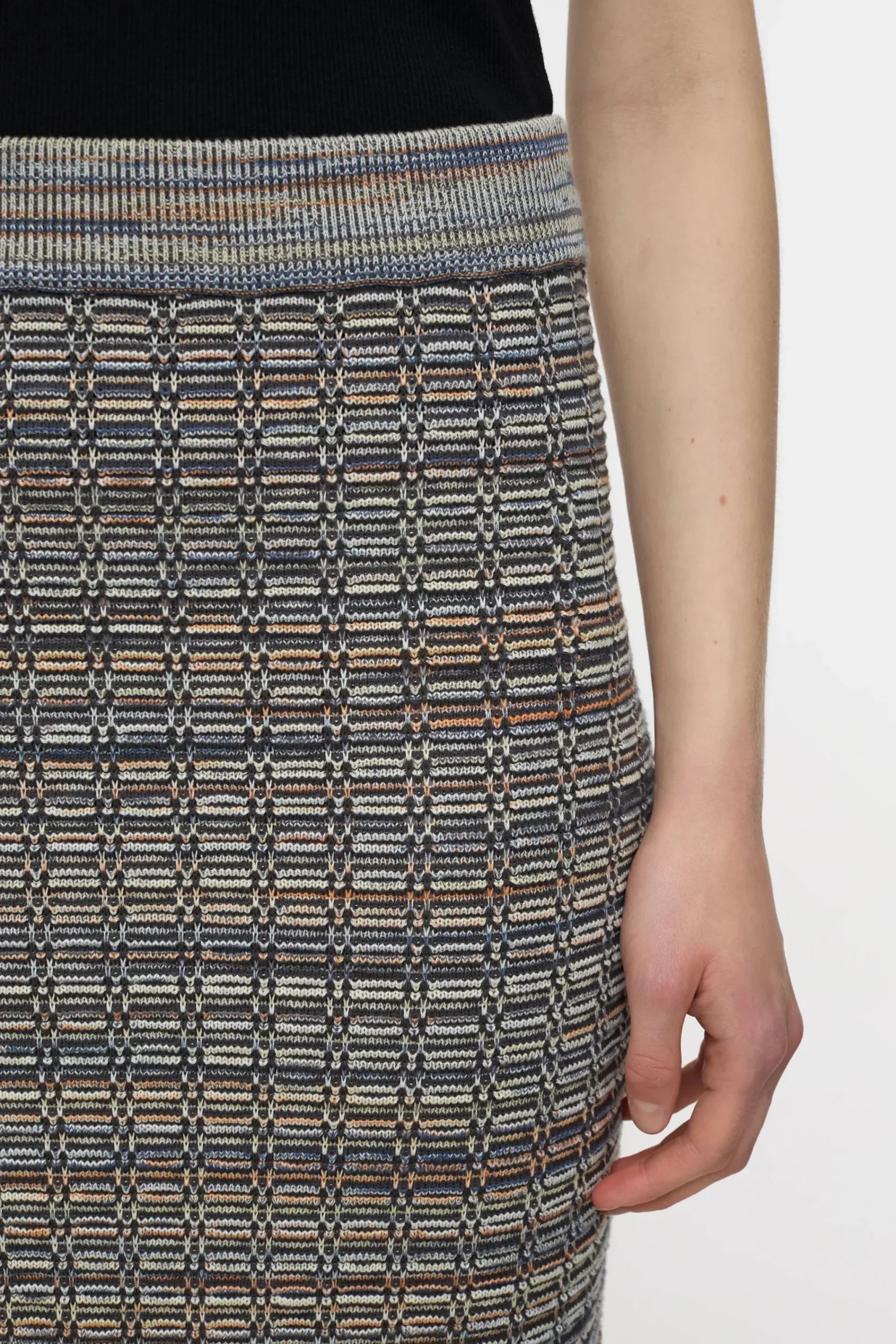 Unser schmaler Feinstrickrock (7 gg) besteht aus Baumwoll-Mix-Garn in italienischer Qualität. Die bunte und dreidimen…