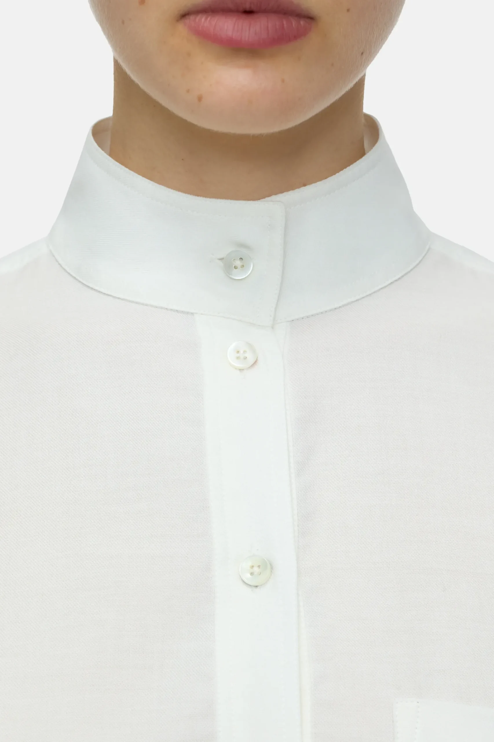 Aus weicher portugiesischer Qualitätqualität mit etwas Kaschmir ist unsere Bluse mit Stehkragen gefertigt. Das feine…