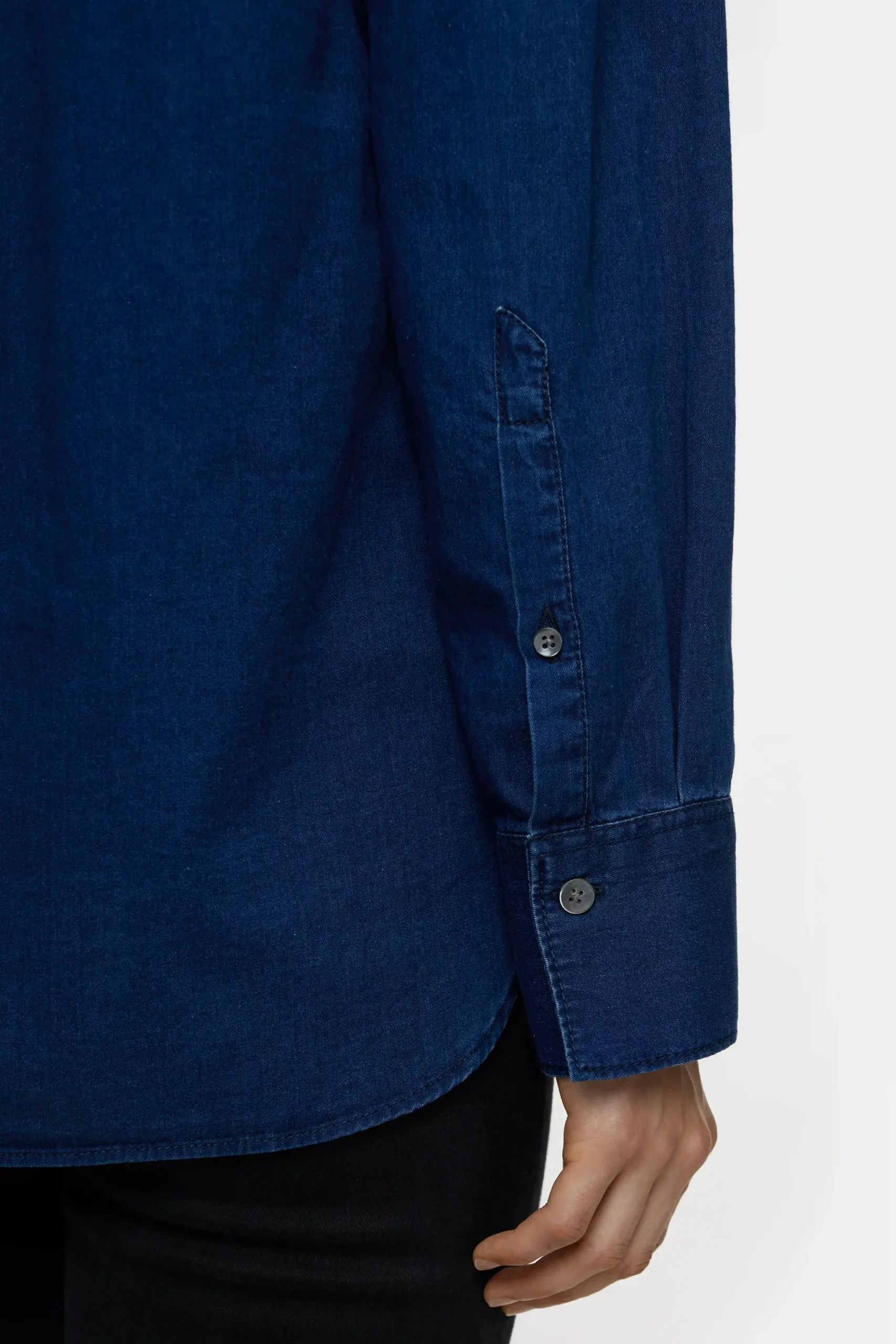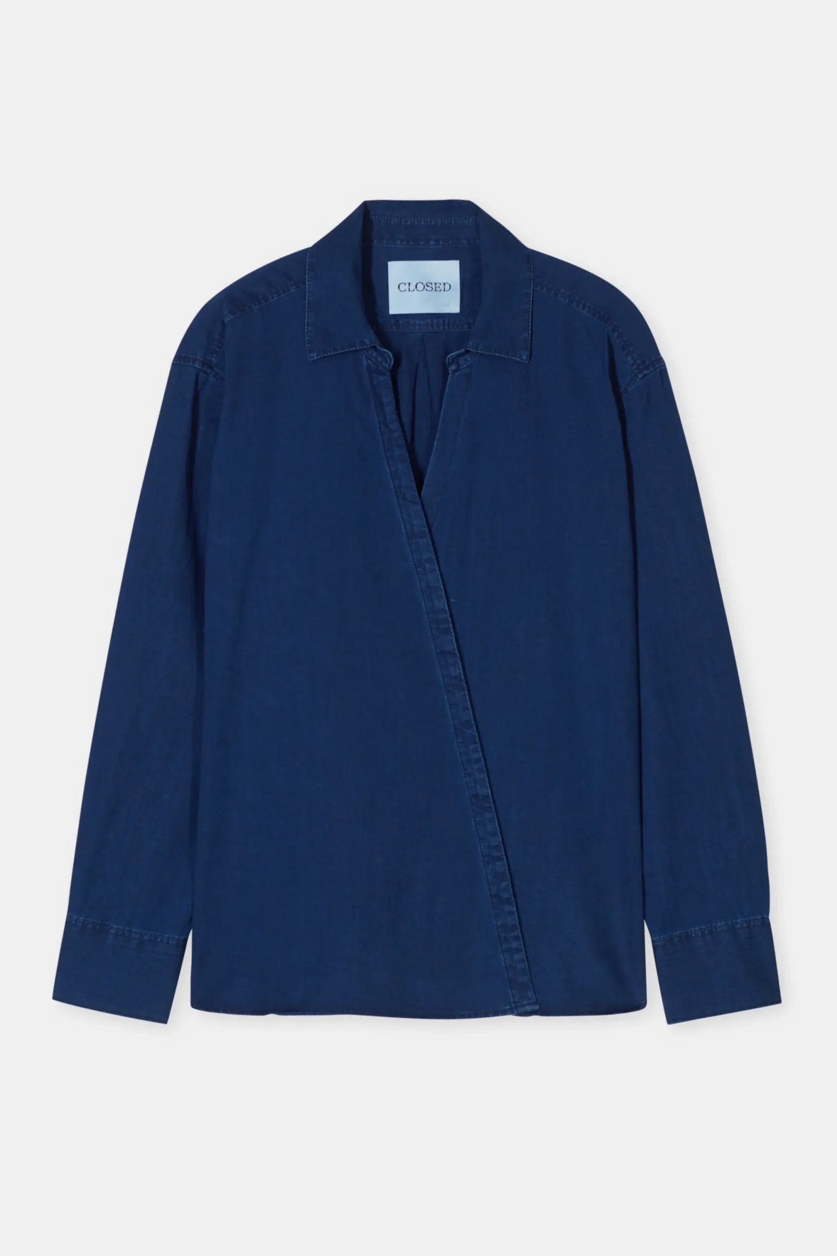 Aus reiner Baumwolle in spanischer und luftiger Denim-Qualität gefertigt: Unsere asymmetrisch designte Bluse mit Krag…