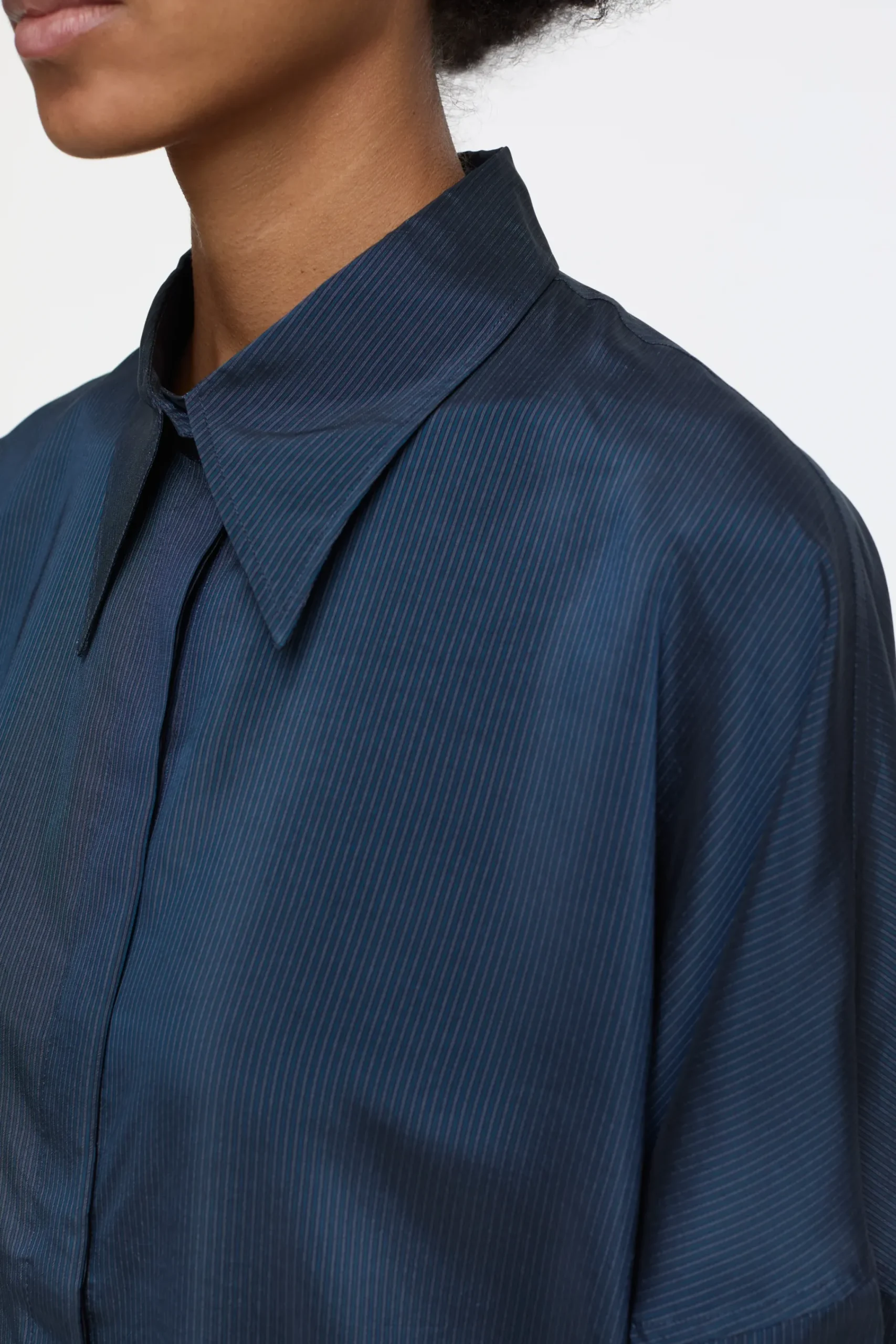 Gefertigt und konfektioniert aus hochwertiger Cupro-Qualität in Portugal: Unsere Oversize-Bluse im Streifen-Design ko…