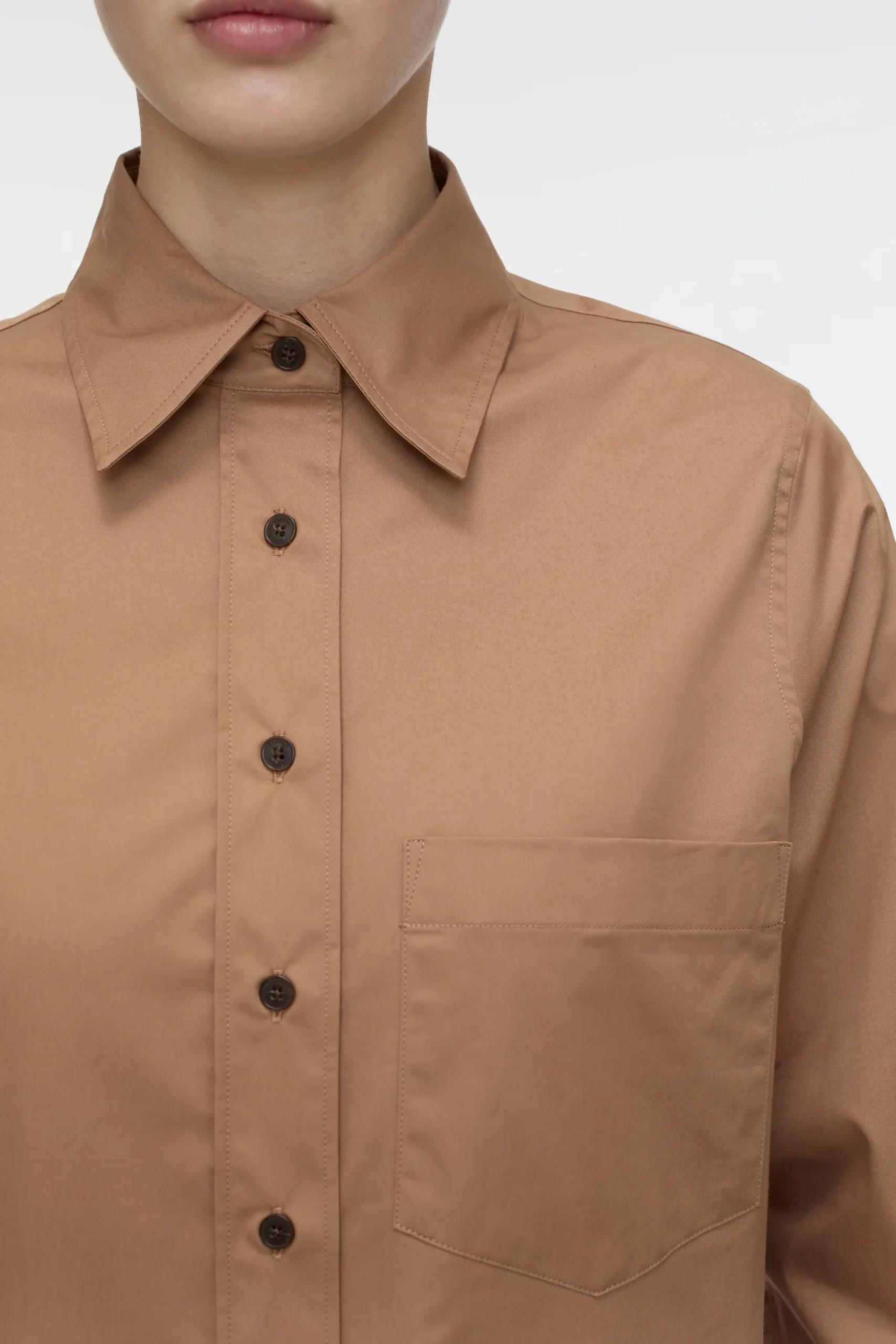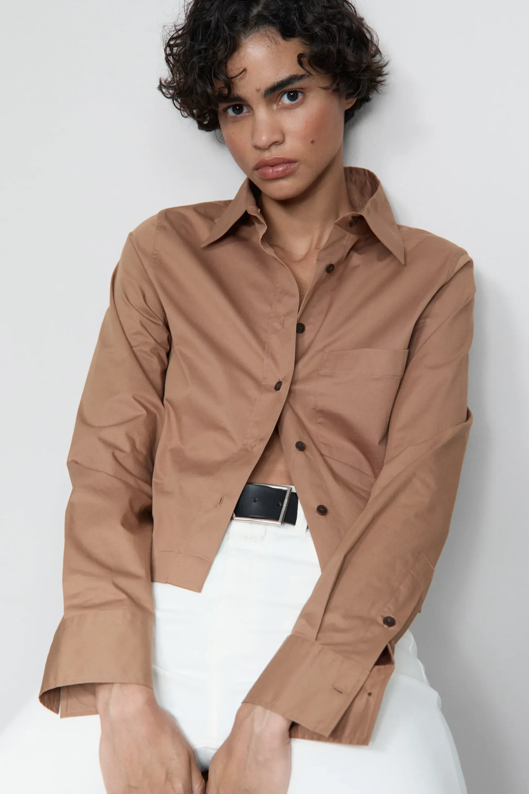 Aus Baumwoll-Popeline mit leichtem Elasthan-Anteil in Portugal gefertigt, zeichnet sich die verkürzte Hemdbluse durch…