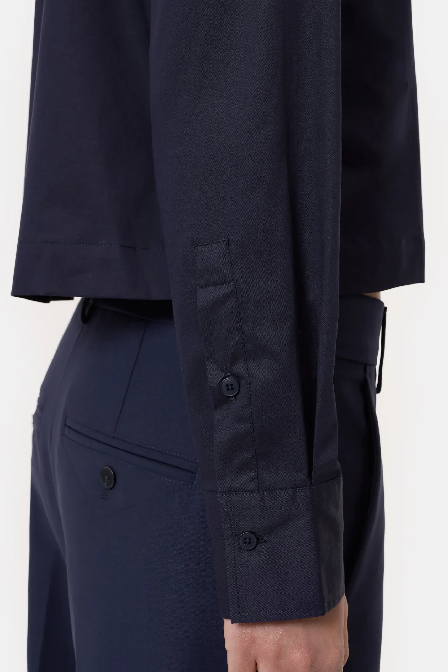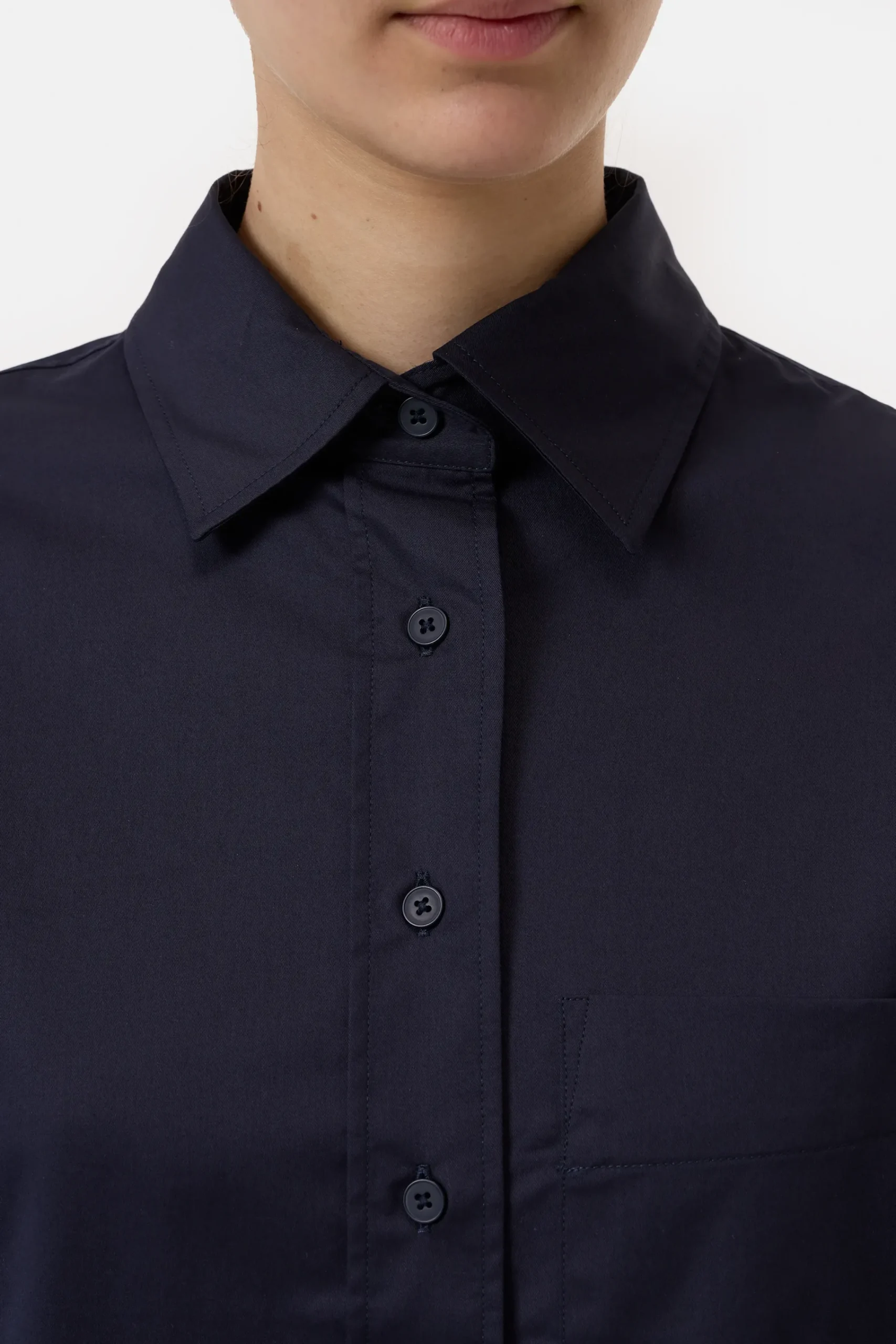 Aus kräftiger Baumwoll-Popeline mit Paper-Touch-Griff und cleaner Optik: unsere verkürzte Bluse mit klassischem Hemd…