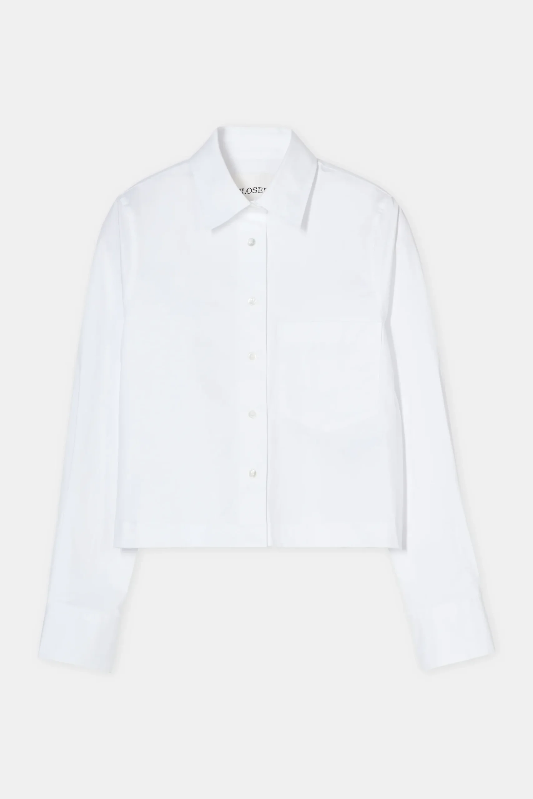 Aus kräftiger Baumwoll-Popeline mit Paper-Touch-Griff und cleaner Optik: unsere verkürzte Bluse mit klassischem Hemd…