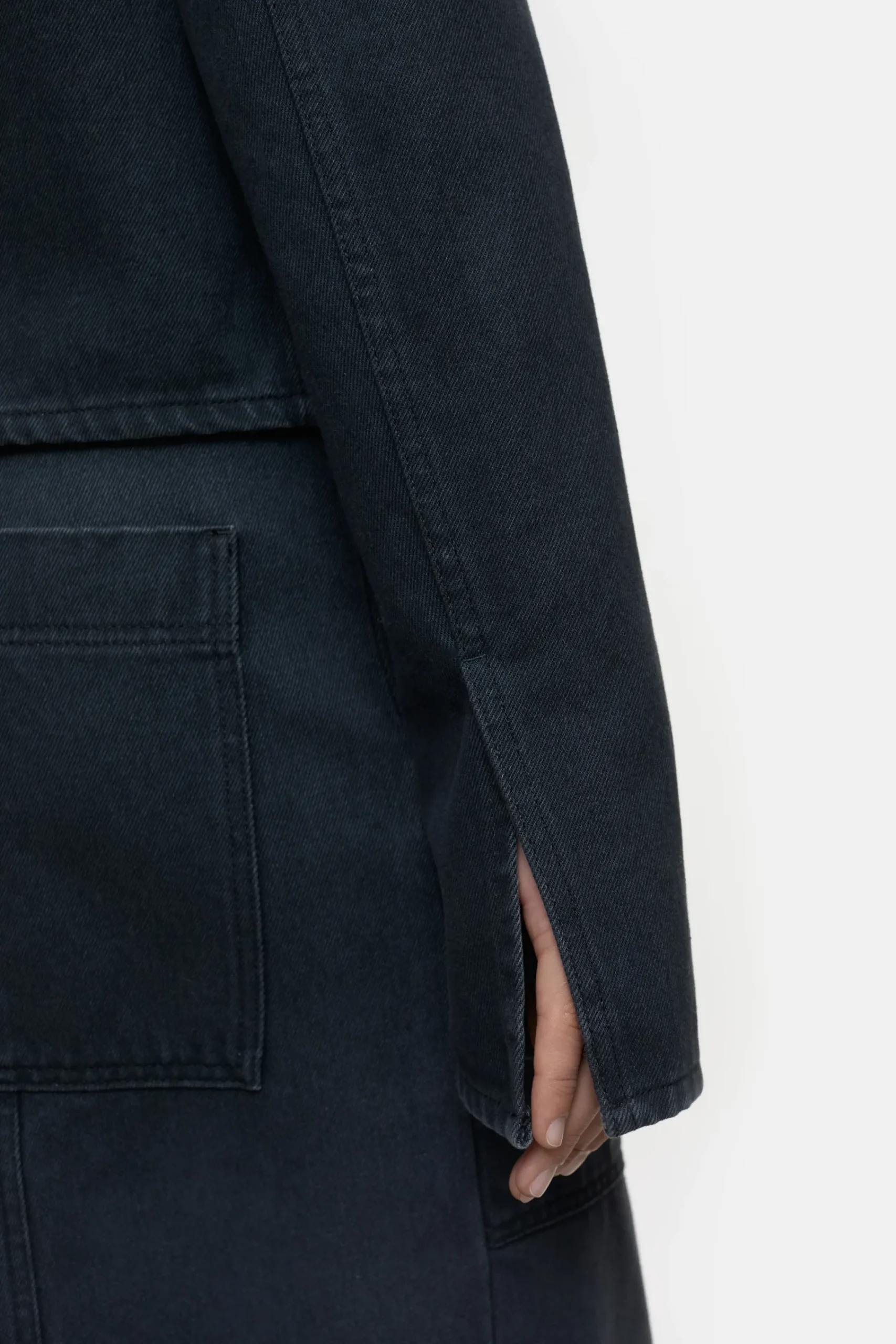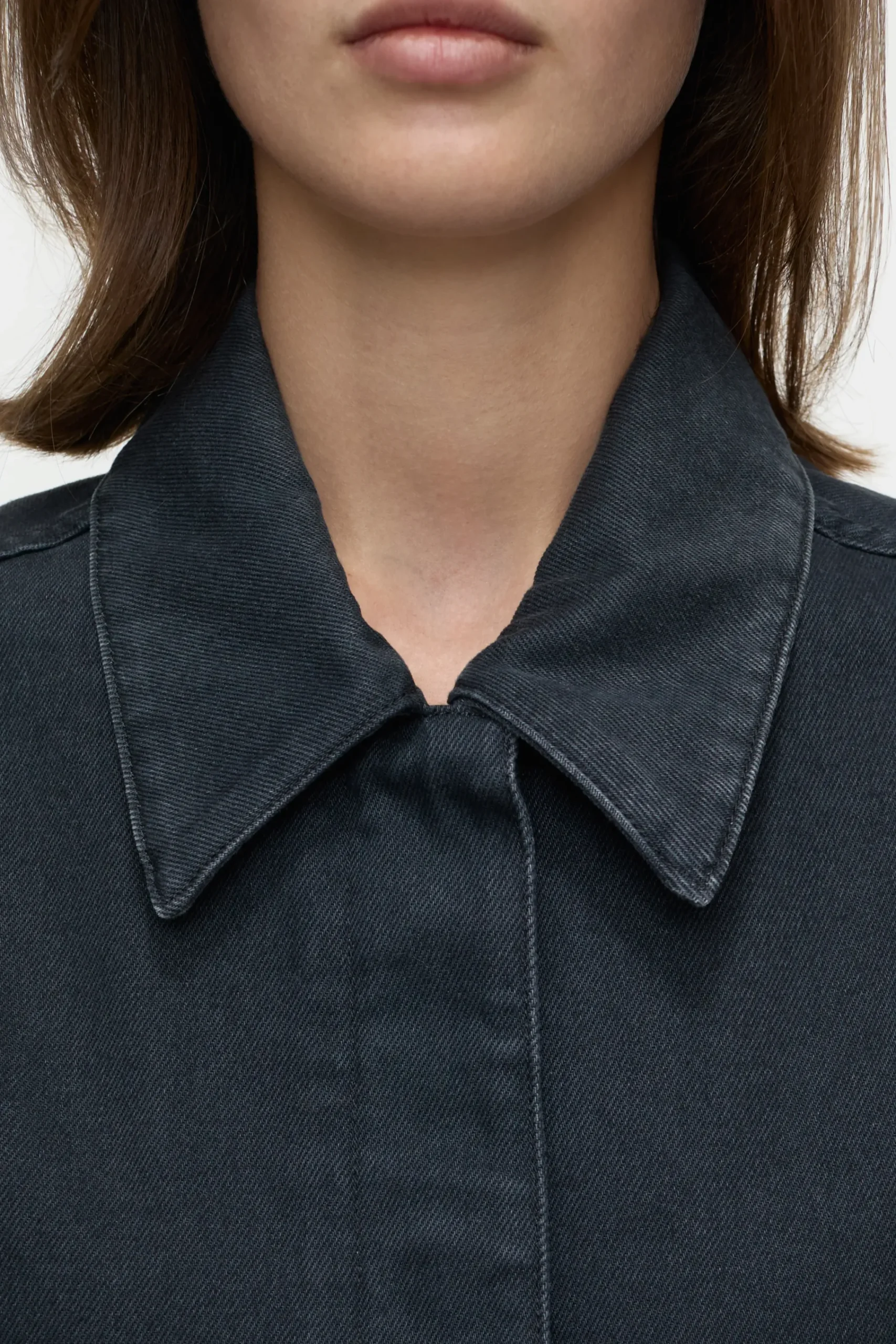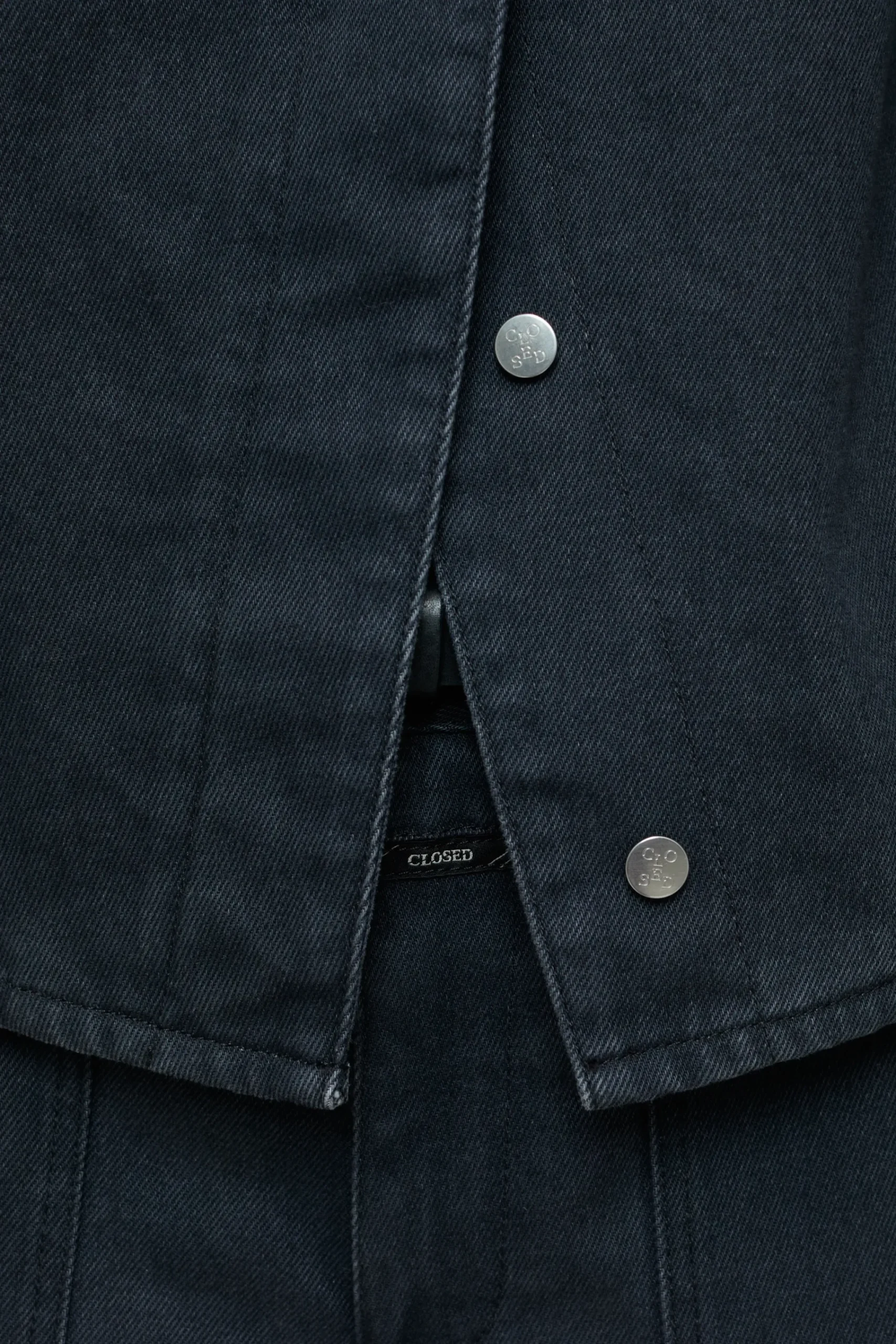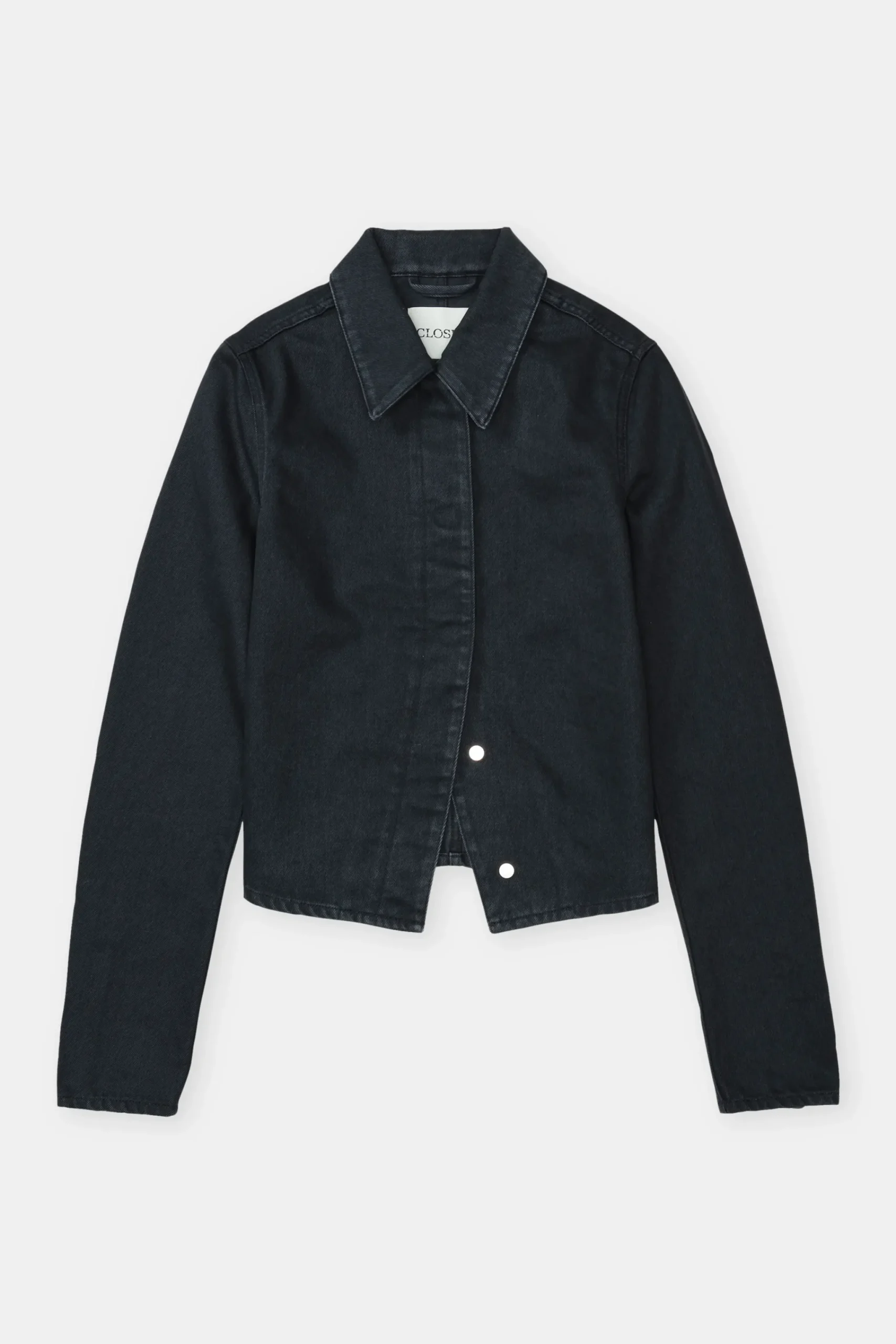 Teil unserer Eco-Denim-Linie A BETTER BLUE: das taillierte und kurze Overshirt aus kräftigem Denim (13 oz.) in schwar…