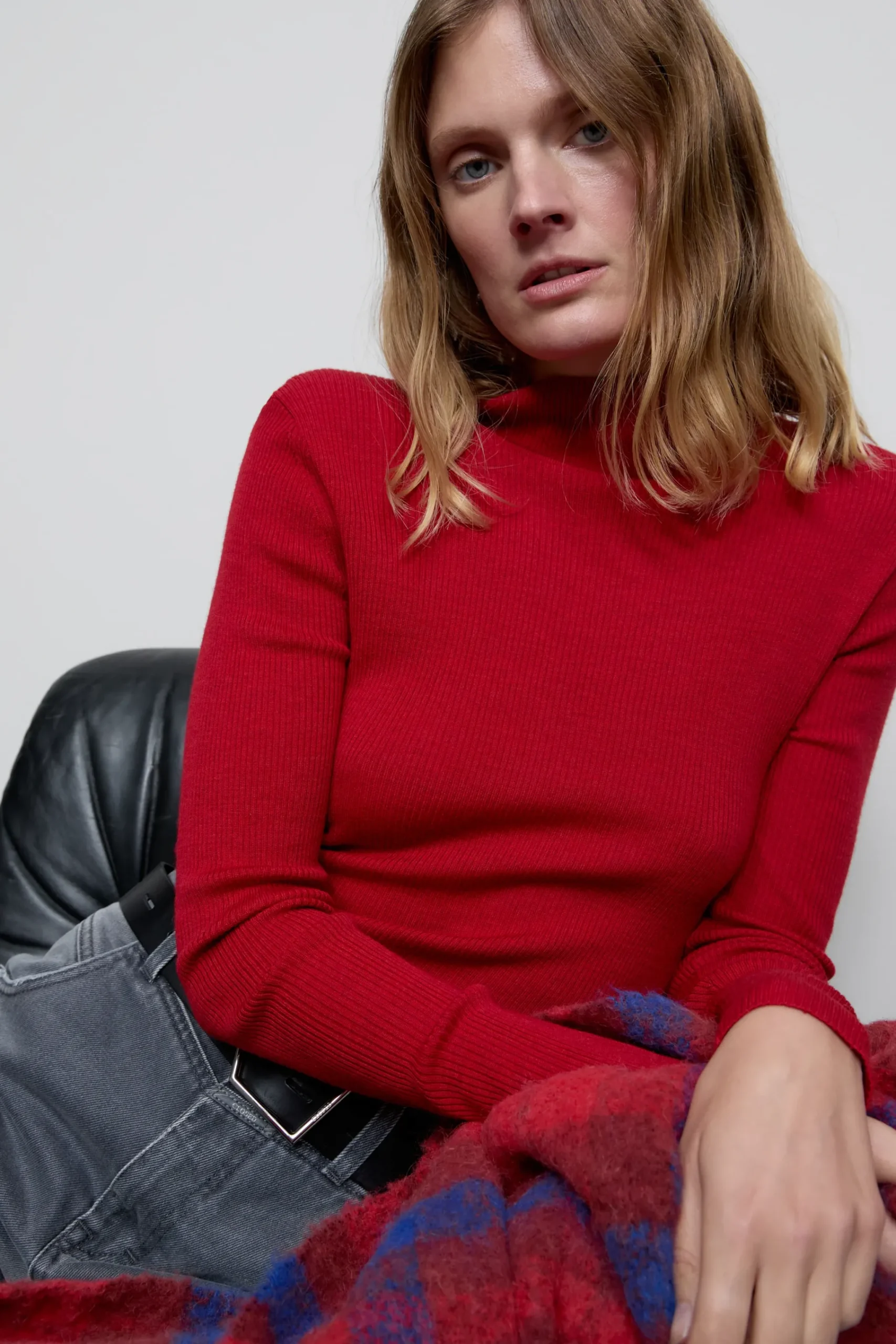 Das Langarmshirt mit Stehkragen in luxuriösem Feinstrick (16 gg) ist aus einer weichen Woll- und Kaschmir-Mischung ge…