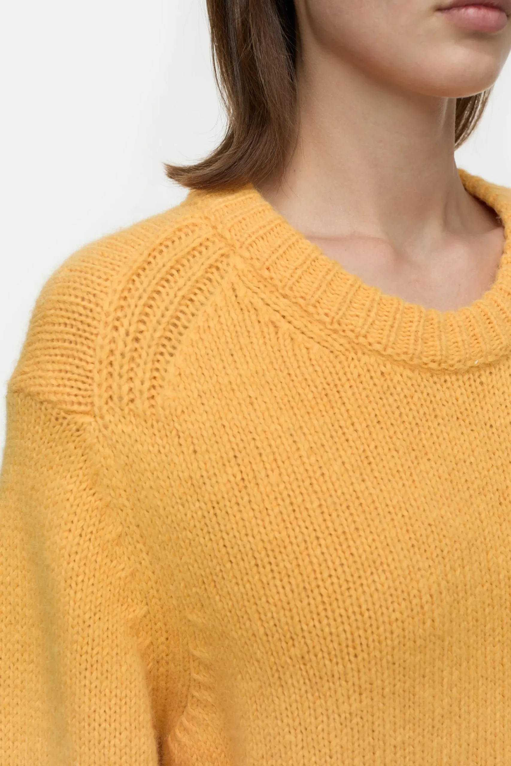 Unser kurzer Crewneck-Pullover in superweichem Grobstrick (3 gg) aus feinem Alpaka- und Merinowolle-Mix. Mit breiten B…